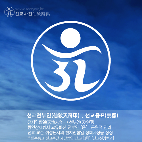 5. 선교(仙敎) 종교표장 “천지인합일 천부인 옴”은 천부삼인(天符三印) · 천지인삼재(天地人三材) · 천지인삼원(天地人三原) · 천지인삼신(天地人三神)의 일체(一體), 합일(合一)의 숭고한 의미가 담겨있다.