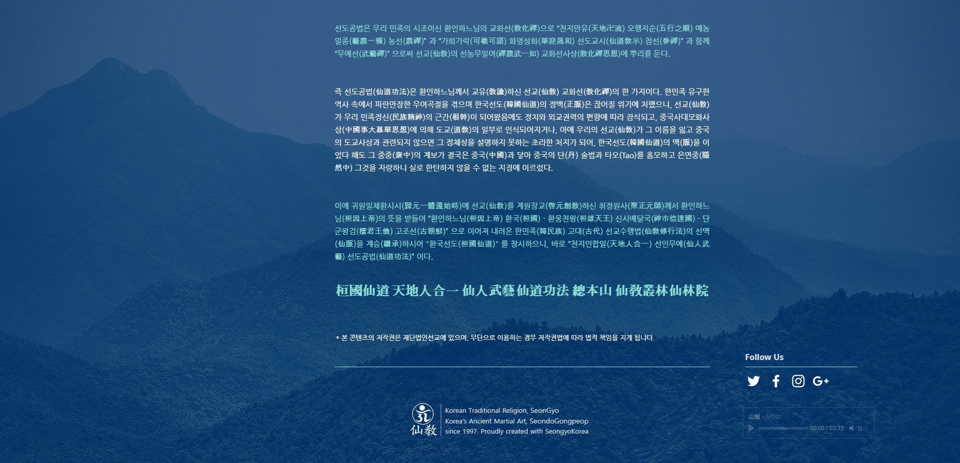 ※ 선교 창교주 취정원사님의 선교창교업적을 도용하고 선교 교단의 경전 및 교리 내용과 선교 수행법을 무단도용하는 유사선교단체 및 타종교는 민형사상의 법적처벌을 받게됩니다.