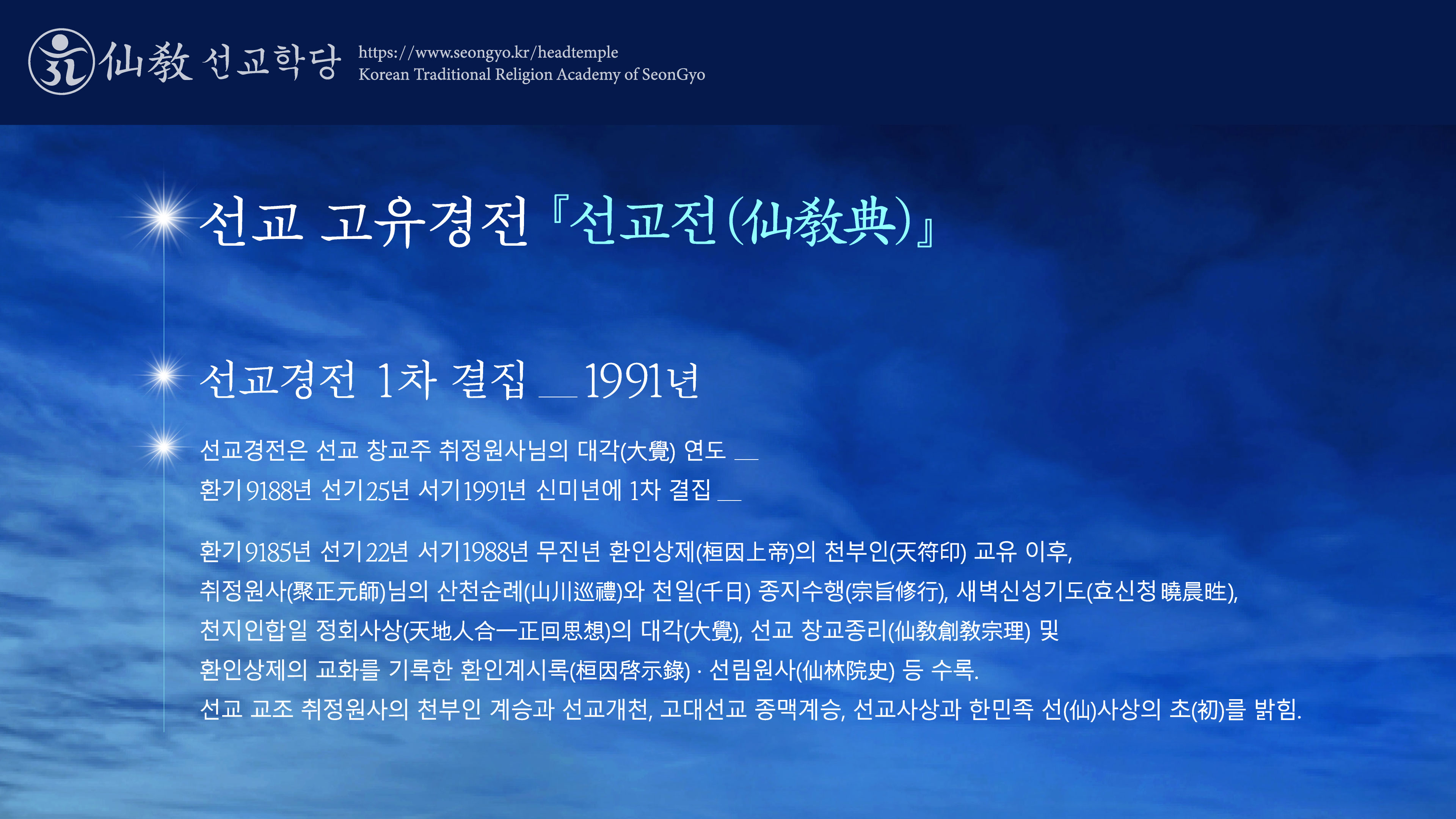 선교 경전 『선교전(仙敎典)』은 선교 고유경전이다. (1988~1997. 선교 교조 취정원사 原著)
