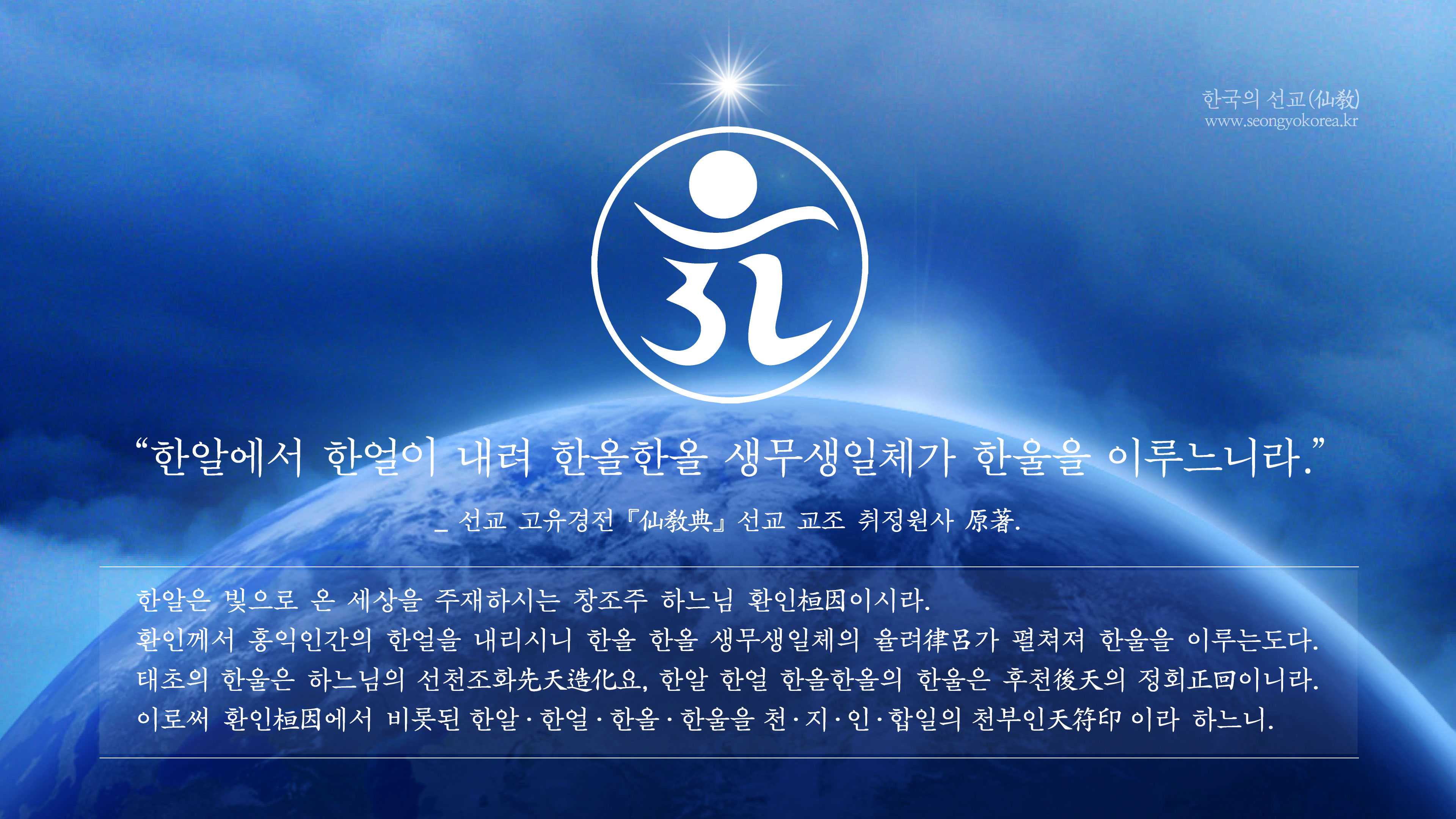 “한알에서 비롯된 인류의 신성” _선교경전 《선교전(仙敎典)》 신성교유(神性敎諭) 篇.