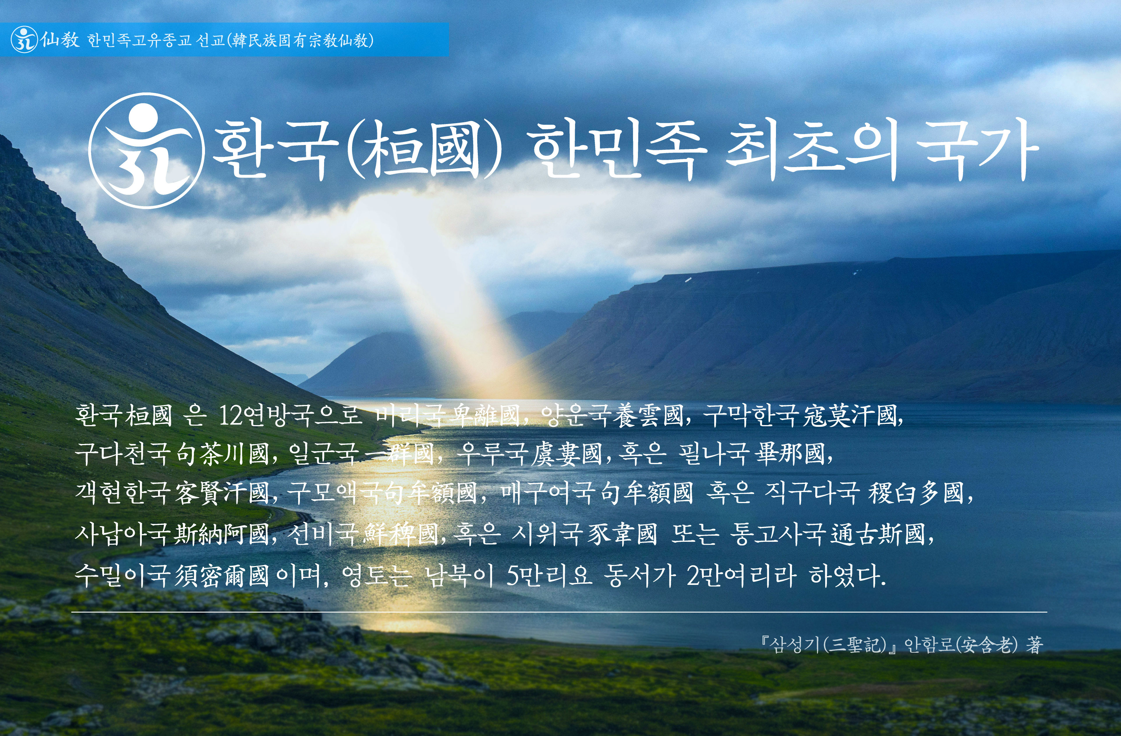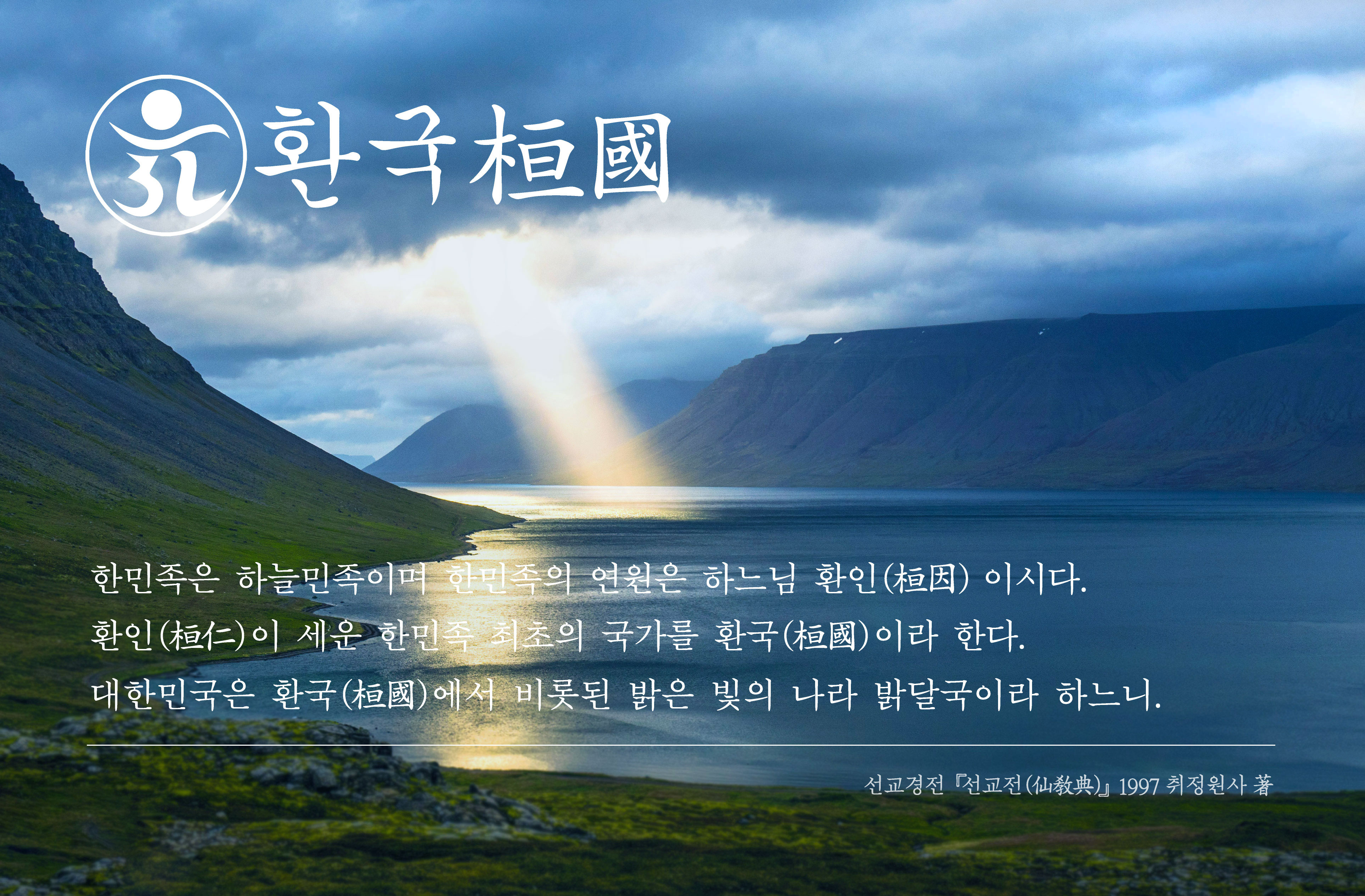 “환국(桓國)은 약 1만년 전, 신인(神人)이신 환인(桓仁)이 세운 한민족 최초의 국가이다.” _ 취정원사 《하느님의 나라 환국(桓國)》 교유