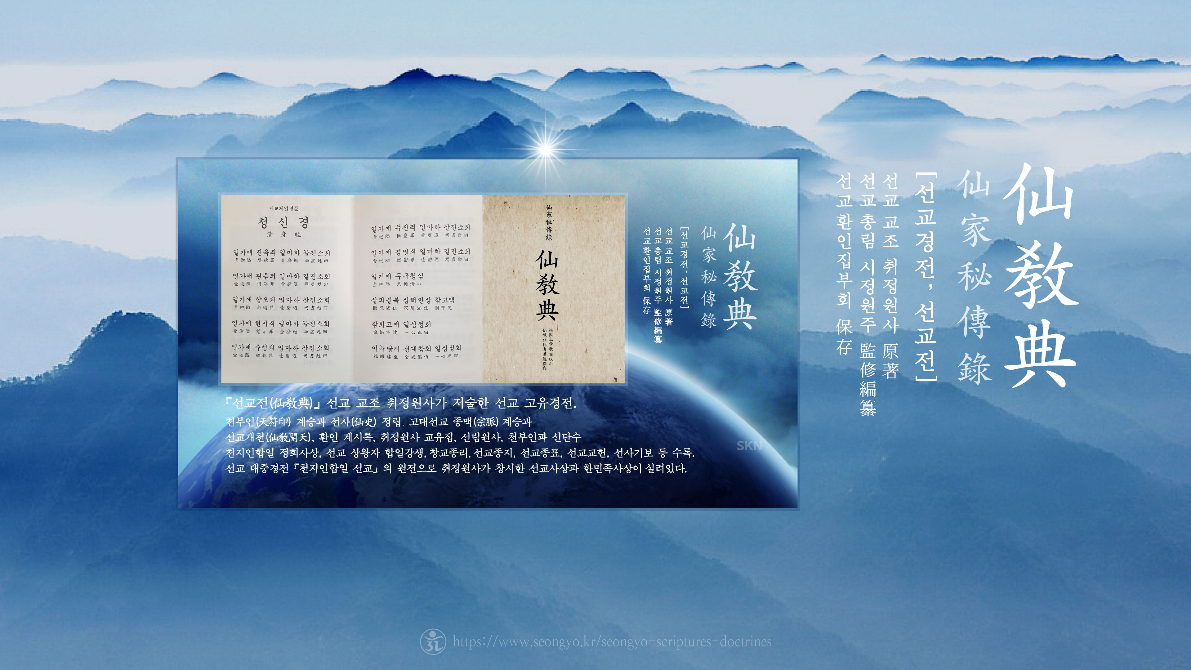 선교, 선교 취정원사, 선교 仙敎, 선교경전, 선교 창교주, 선교 창교, 선교 교조, 선교 교단 창설, 선교 종헌 제정, 환인상제, 천부인 계승, 선교 개천, 한민족고유종교 선교 천명, 천지인합일 정회