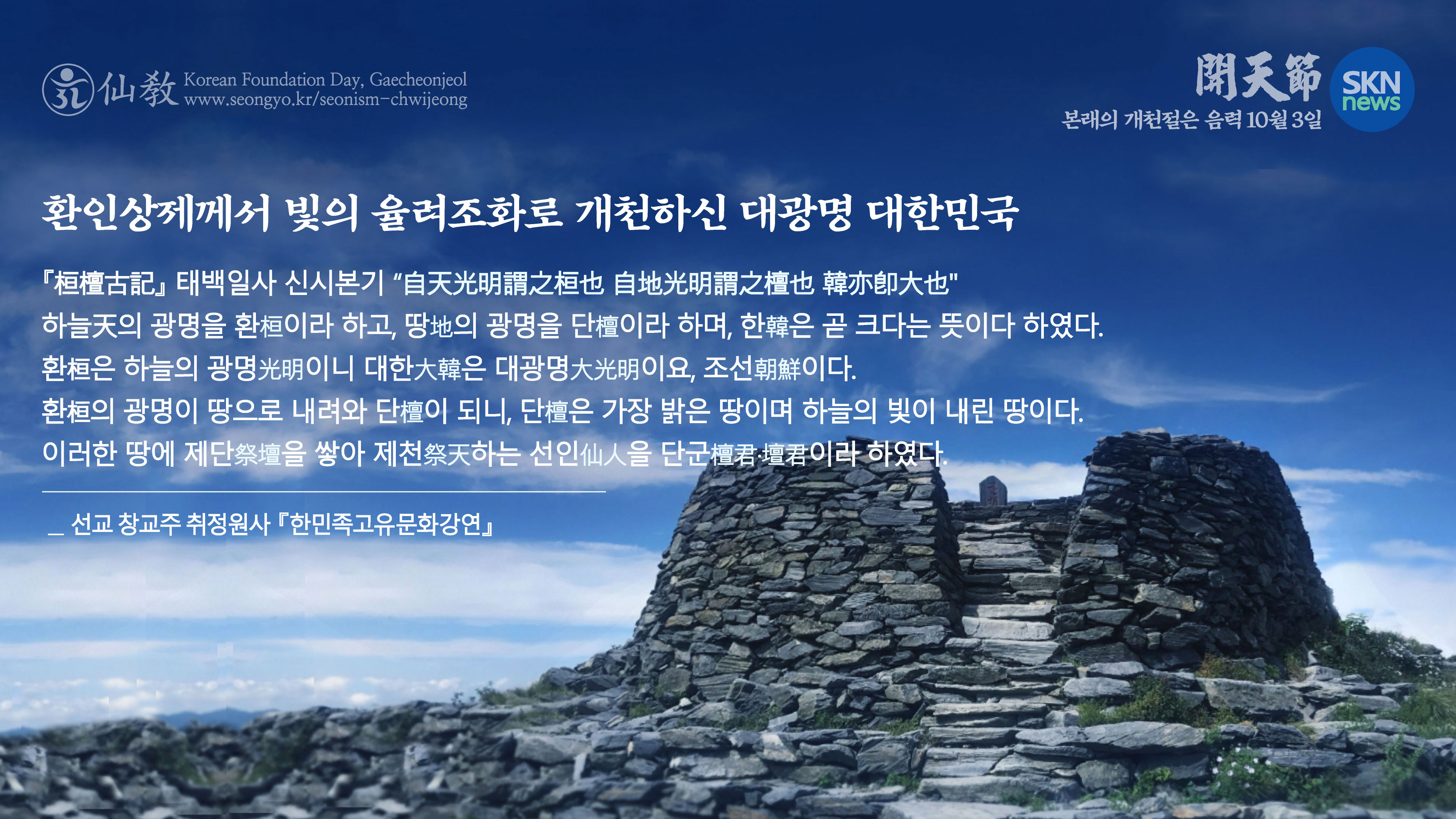 ※ 위 내용은 선교 창시자 취정원사聚正元師께서 선교경전 『仙敎典』 1991~1997 취정원사 著 _에 밝히어 놓으신 「개천교유開天敎諭」 중에서 발췌한 것으로, 환기9219년 임인년 개천절에 취정원사께서 선교 교단과 각 교당에 「개천교유문開天敎諭文」으로 내리신 내용의 일부룰 실어 수행대중에 전합니다.