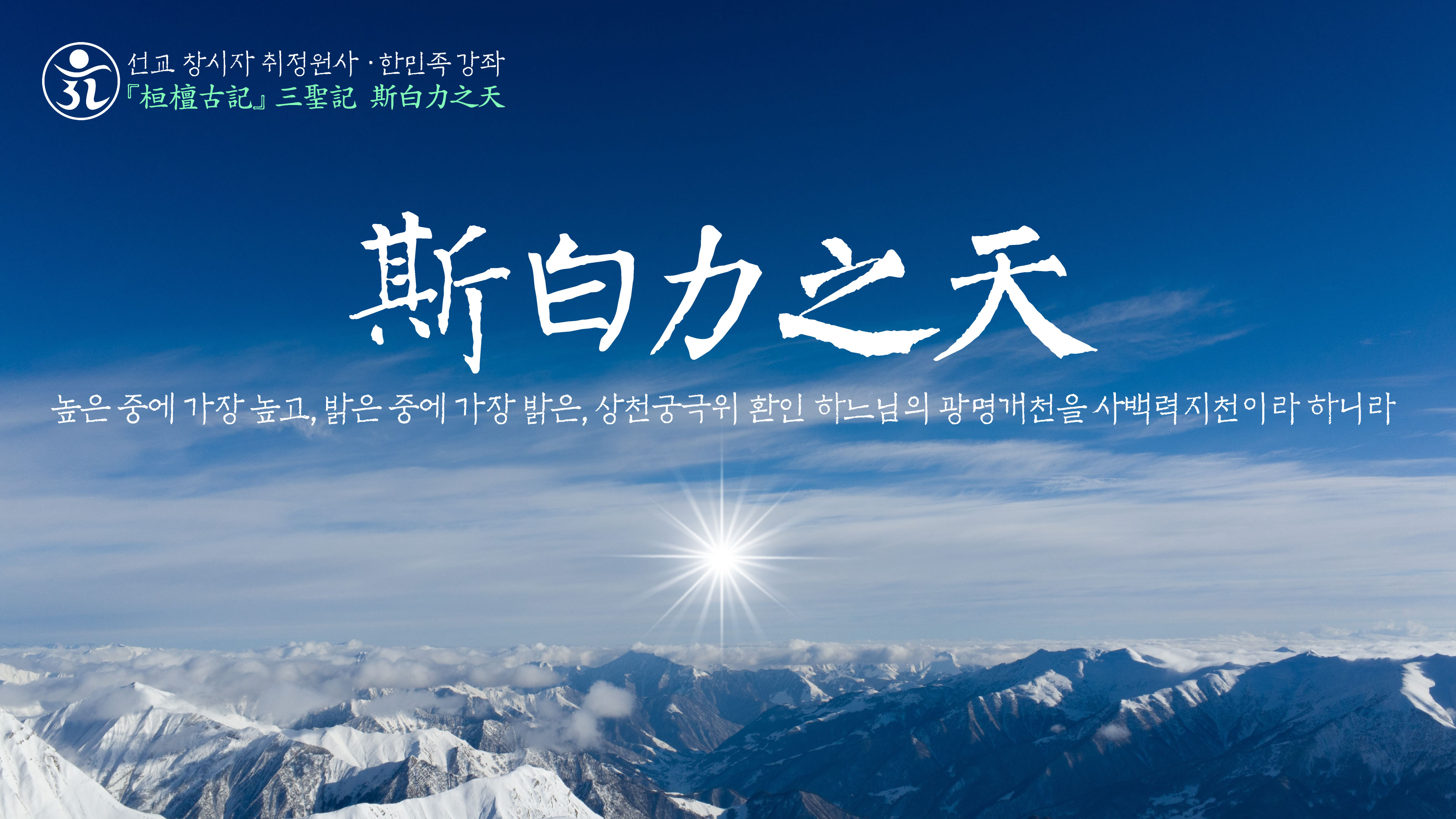 취정원사 한민족강좌 “광명사상” 有一神在斯白力之天爲獨化之神 光明照宇宙權化生萬物