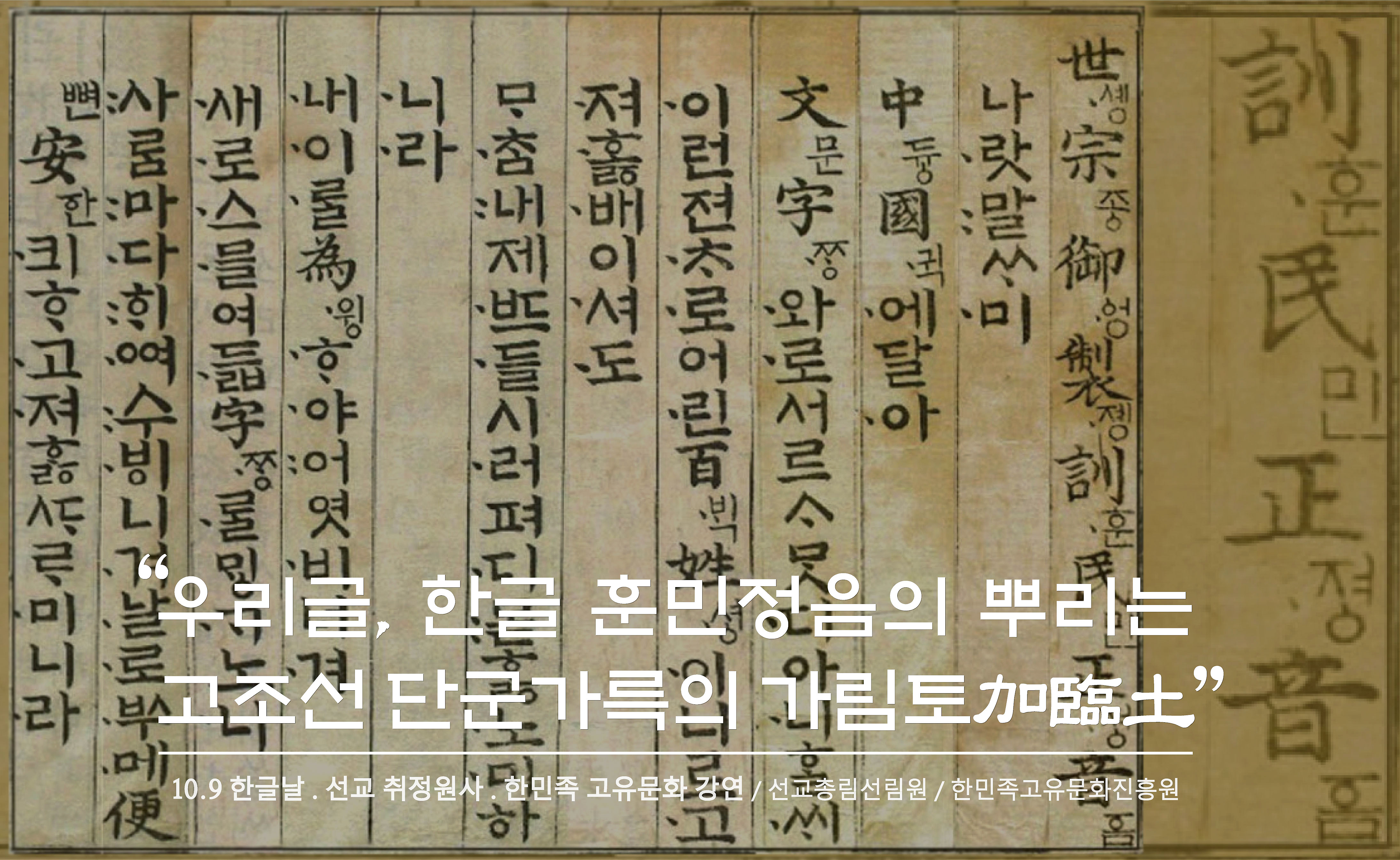 제목 : 선교 취정원사 577돌 한글날 맞아, “가림토 문자로 살펴보는 한글의 기원” _ 한민족고유문화강연