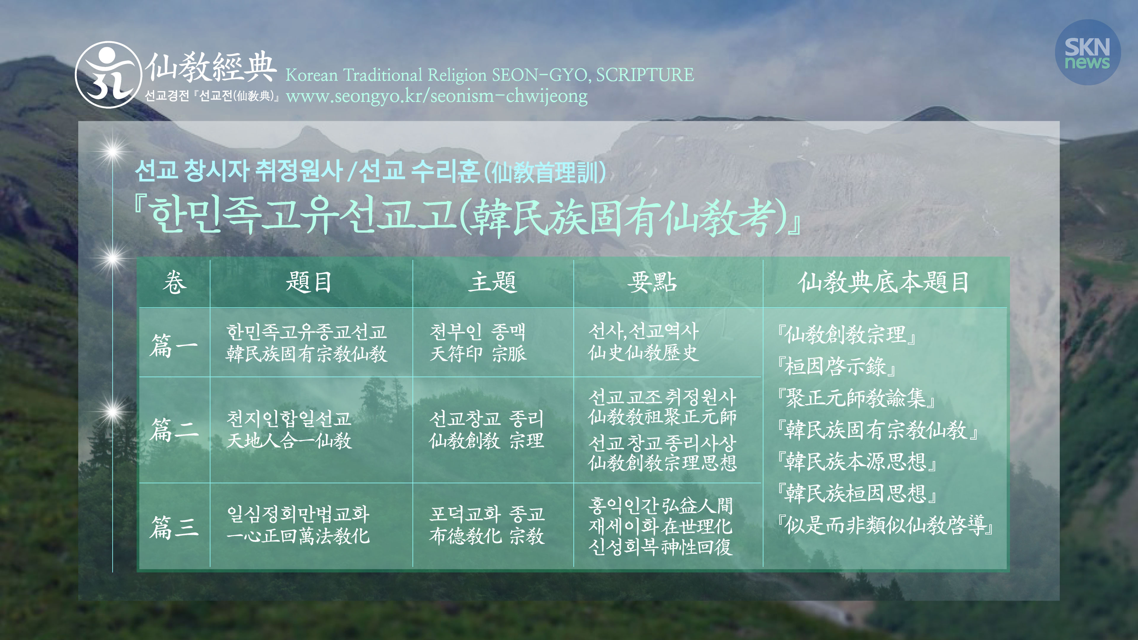 “고대선교 제천의식 계승. 선교 교단의 재세이화 한울세상 실현과 인류의 신성회복 기원”