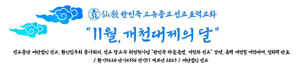 | 환기9220 선기57 선교창교33년 | 선교강원 선교 교조 취정원사 “선(仙)사상” 한민족강좌 |