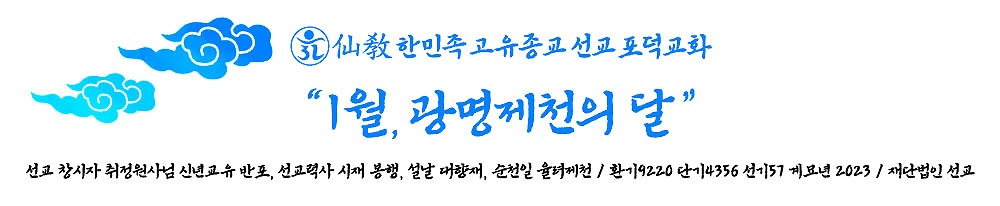 | 환기9220 선기57 선교창교33년 | 선교 교단 음력 2월 선정기간 / 2023.2.20~3.12 | |