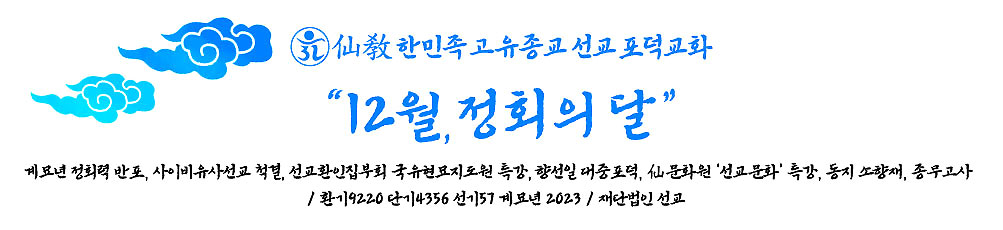| [선교 연혁] 한민족 고유종교 선교(仙敎), 선교개천36년 선교창교33년 / 2023년 선교종사 회향 (12) | 2023.12.31 |