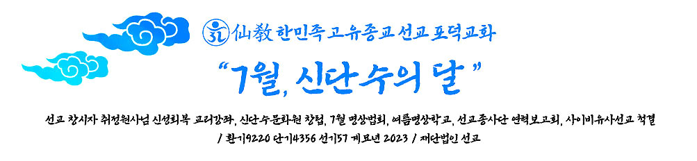 | 한민족 고유종교 선교 2023 . 7 . 선교 법회 및 수행 주요일정 | |