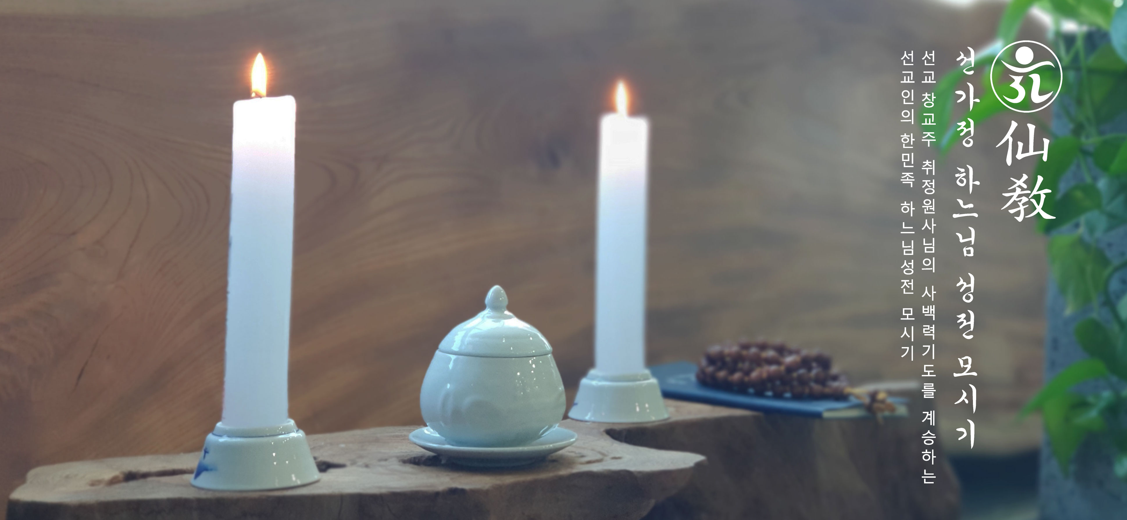 선교 포성기도(仙敎布仙祈禱) ※ 기간 : 환기9218년 신축년 선교 포성기도 2021.12.1 ~ 12.21 ※ 장소 : 선교총림선림원 지리산 선교수련원, 선교수행대중 선가정 성단(誠檀) ※ 내용 : 선교 포덕행 “
