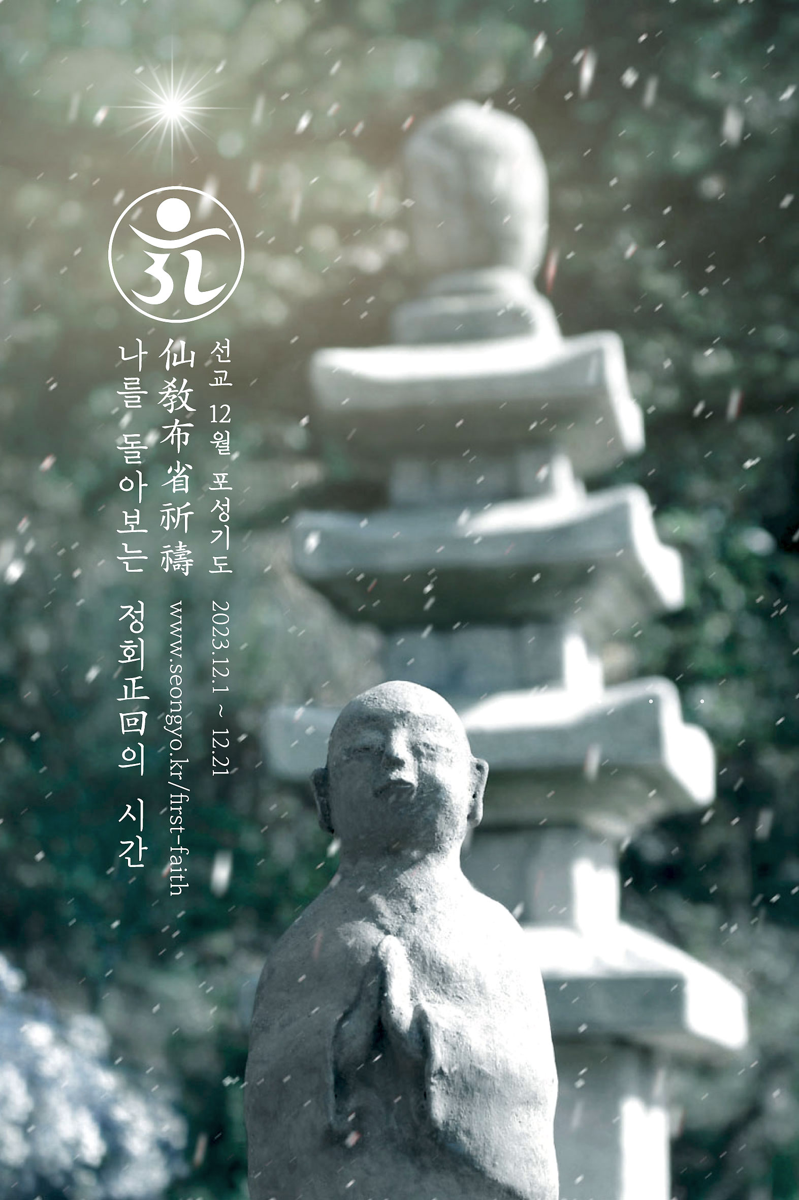 “신성의 숲”을 이루는 선교수행대중은 일년간의 고단했던 발자취를 돌아보며 스스로에게 포성(布省)합니다. 성찰하고 참회하여 재계(齋戒)합니다. 스스로의 포성기도가 타인을 위한 포덕행(布德行)의 기도로 회향하기를 발원합니다. 선교인 하나하나의 청정한 선교신행(仙敎信行)이 진정한 선제로 거듭나는 승선(昇仙) 길이 되기를 소망합니다.
