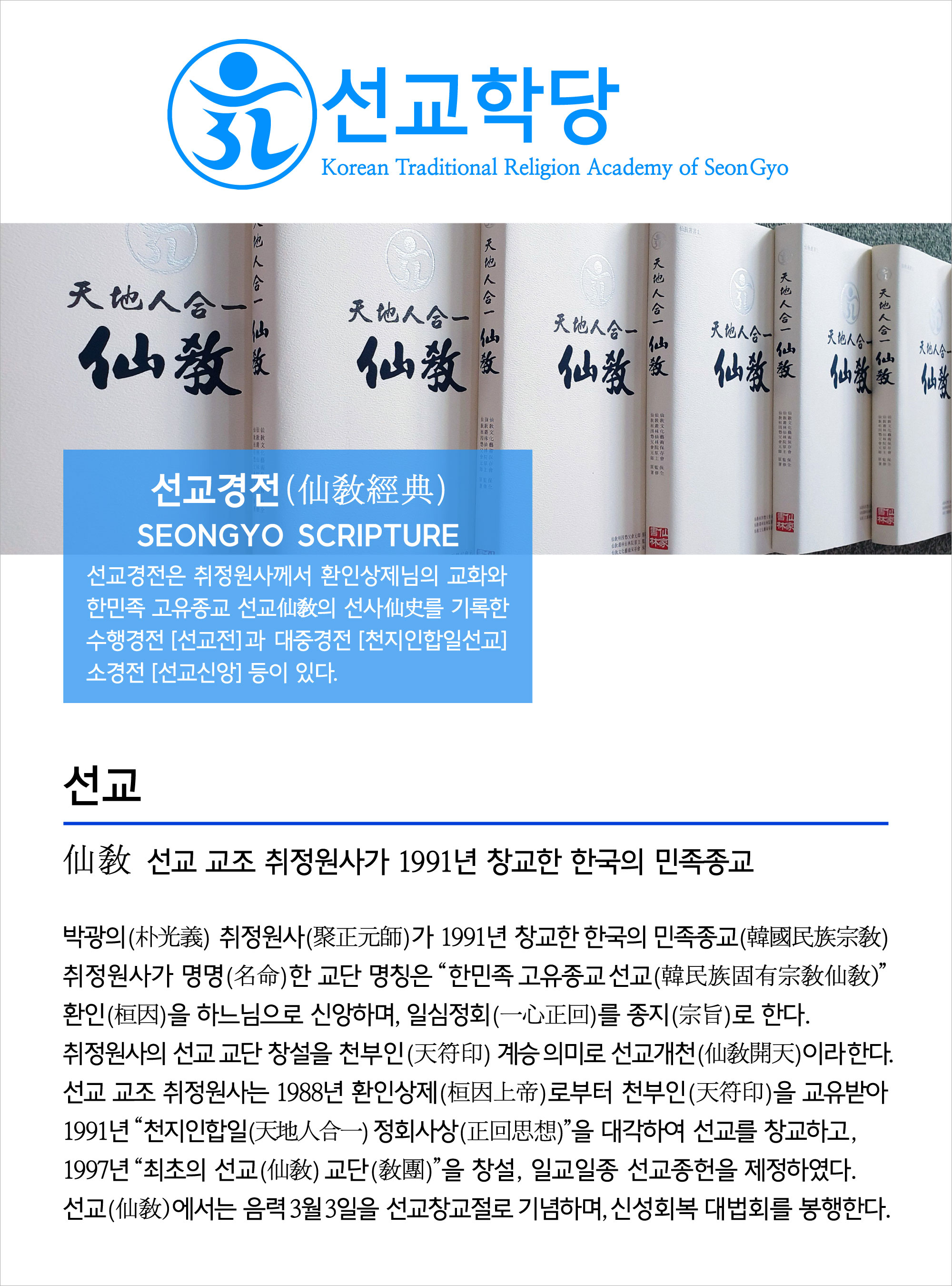 ※ 『仙敎典』 : 선교 경전. 한민족 고유종교 선교(仙敎)의 고유경전(固有經典). (1988~1997, 聚正元師 原著, 底本)