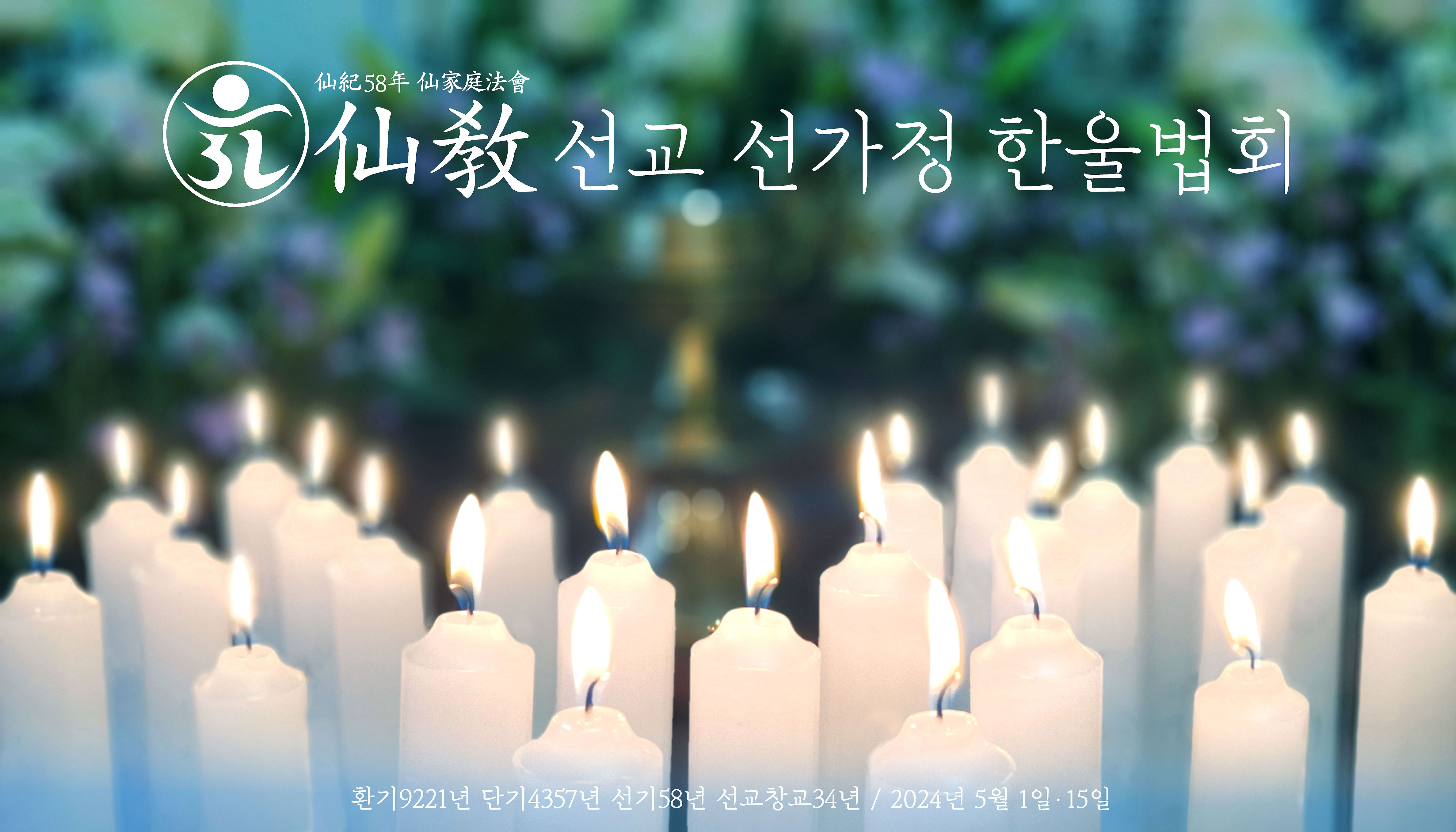 [선교중앙종무원] 선교종단 재단법인 선교(仙敎)와 선교총림 선림원(仙林院)은 5월 가정의 달을 맞아 5월 1일 ‘선(仙)가정 한울법회’를 개최하고 인류평화지도자 연수 실시, 5월 15일 ‘선(仙)가정과 인류평화공존’를 주제로 선교 창교주 취정원사님의 선가정 특강을 진행합니다.