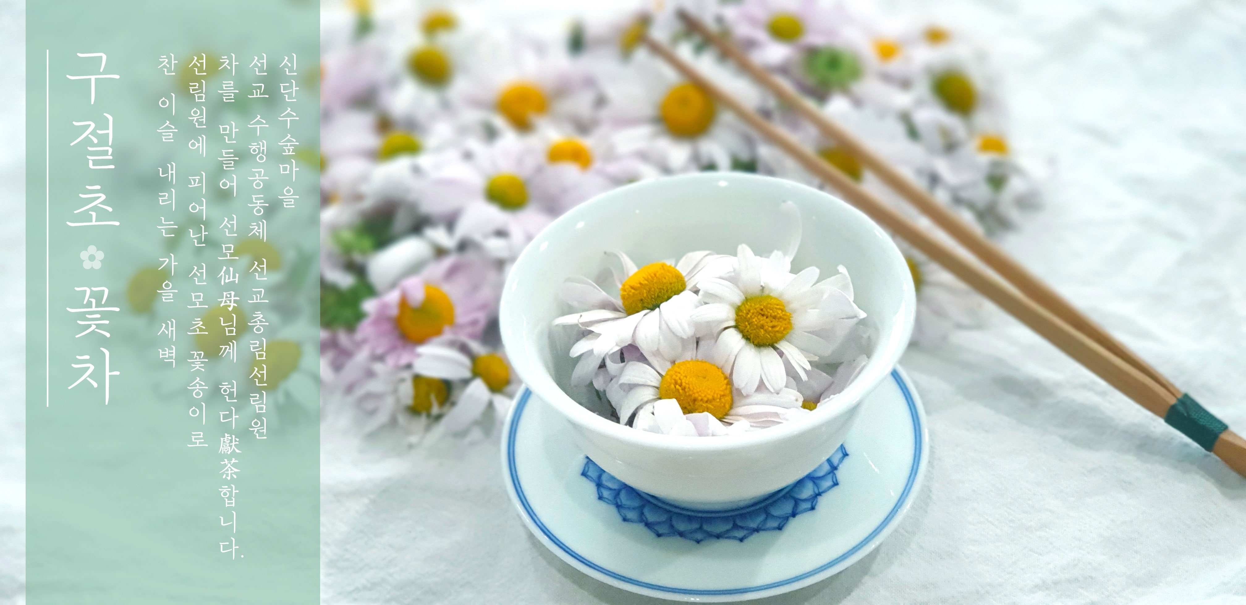 『선교의례집(仙敎儀禮集)』에 기록된 선교(仙敎) 전통의례에 따라 개천절(開天節) 율려의제(律呂懿齊) 참선수행(參禪修行)으로 재계의식(參禪儀式)을 행한 선교 수행대중과 도무사(道務士)가 구절(九節)을 이룬 선모초(仙母草)의 꽃으로 제다(製茶)하여 선교총림 선림원(仙林院) 시정원주(時正原主)님께 청행수반(淸行秀盤) 선모(仙母)의 예(禮)를 갖추어 헌다(獻茶)하였습니다.