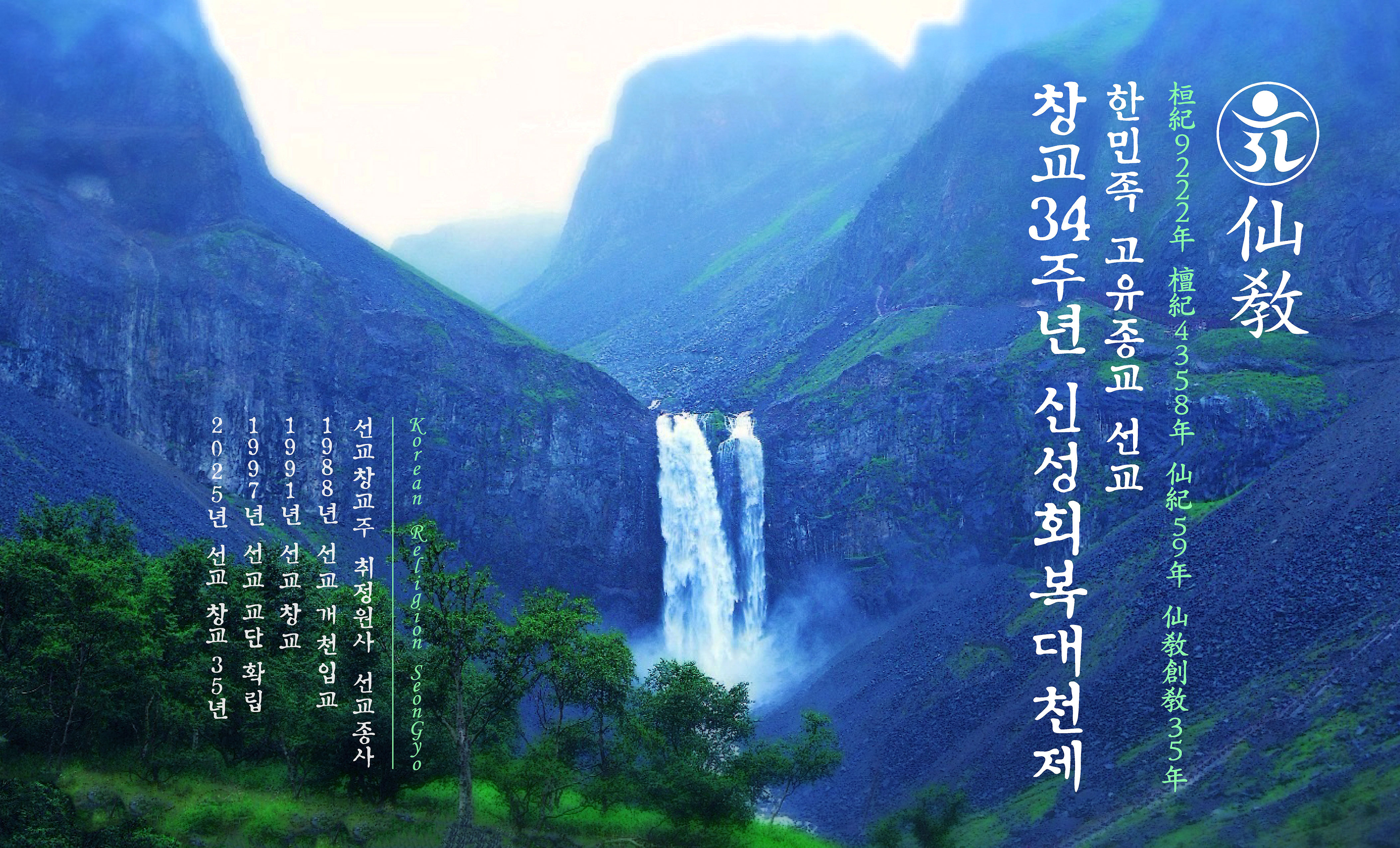 선교종단 재단법인 선교(仙敎)는 선교환인집부회(仙敎桓因慹父會) 후원 · 선교총림 선림원(仙林院) 주관으로 음력 3월 3일 선교창교일에 “선교 창교 34주년 신성회복대천제(神性回復大天祭)”를 봉행했습니다. 선교 교단(仙敎 敎團)은 창교절(創敎節)에 앞서, 지난 3월 27일에 선교총림 설립자 시정원주(時正原主)께서 집전하신 “대한산천 산불진화를 위한 기우제(祈雨祭)” 봉행에 이어, 천지인 생명기도(天地人生命祈禱)와 산천수호(山川守護) 캠페인을 실시하고 있습니다. 선교총본산 선교총림선림원(仙敎叢林仙林院)의 천지인생명기도는 생무생일체의 구원기도로 전국적인 산불로 인한 희생자를 애도하고, 대한산천의 사람과 자연의 생명이 안전하게 수호되는 날까지 계속하여 진행됩니다. 2025년 올해로 환기(桓紀)9222년 단기(檀紀)4358년 선기(仙紀)59년 창교(創敎)35년을 맞은 “선교(仙敎)”는 환기9188년 단기4324년 서기1991년 신미년 창교 이래, 매년 창교절 행사로 신성회복대법회(神性回復大法會)를 개최해왔습니다. 선교 교단은 선교 창교 33년 2023년에 이르어 한민족의 고유한 제천의식(祭天儀式)을 승계한 의미에서 신성회복대법회를 “신성회복대천제(神性回復大天祭)”로 승격하여 활발한 대중포덕을 실천하고 있습니다.