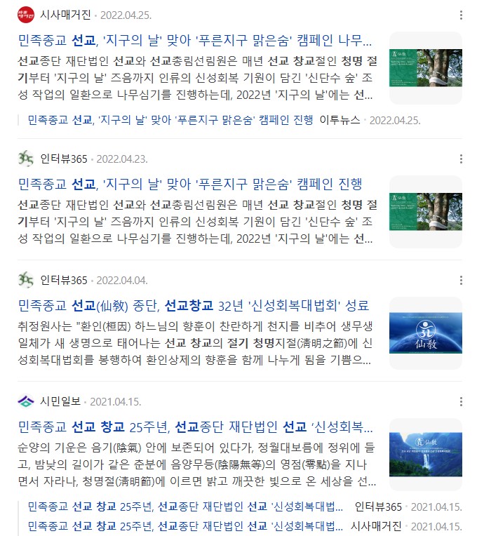 ※인터뷰365 "민족종교 선교(仙敎), 선교수행 선도 포덕교화 법회 진행... 인류의 신성회복 기원 / 청명(淸明) 절기에 선교총림선림원 절기학교 “24절기 선도수행” 대중포덕" (2020.4.4)