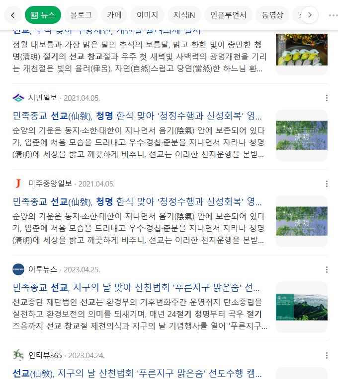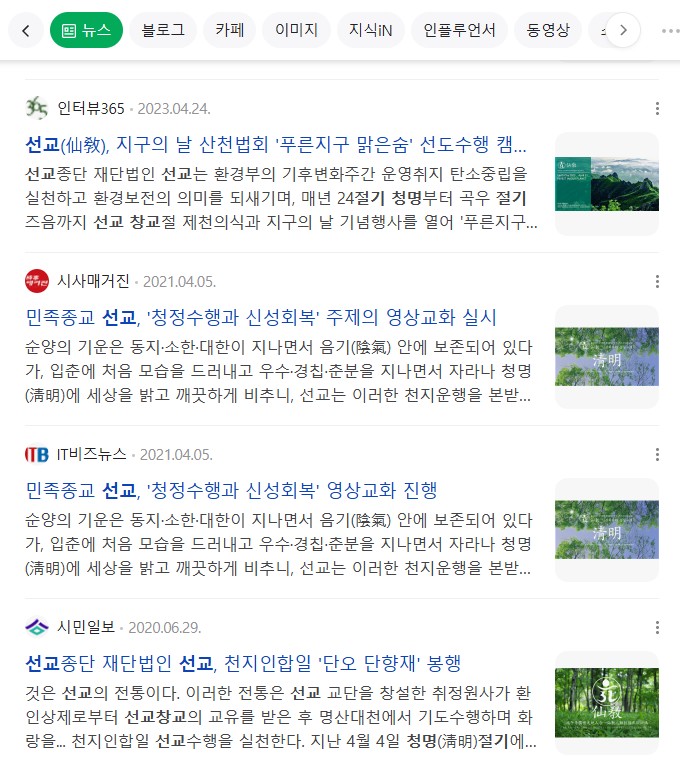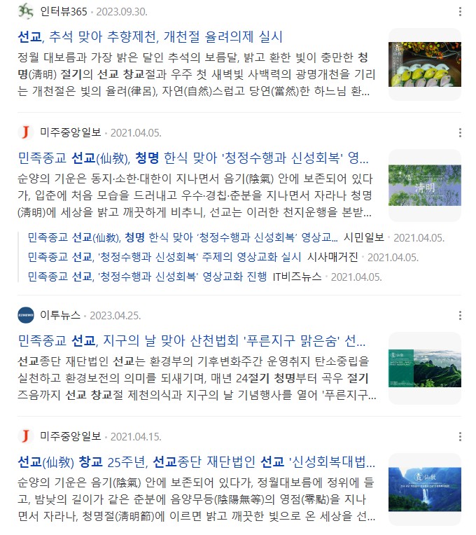 ※인터뷰365 "민족종교 선교(仙敎), 선교수행 선도 포덕교화 법회 진행... 인류의 신성회복 기원 / 청명(淸明) 절기에 선교총림선림원 절기학교 “24절기 선도수행” 대중포덕" (2020.4.4)