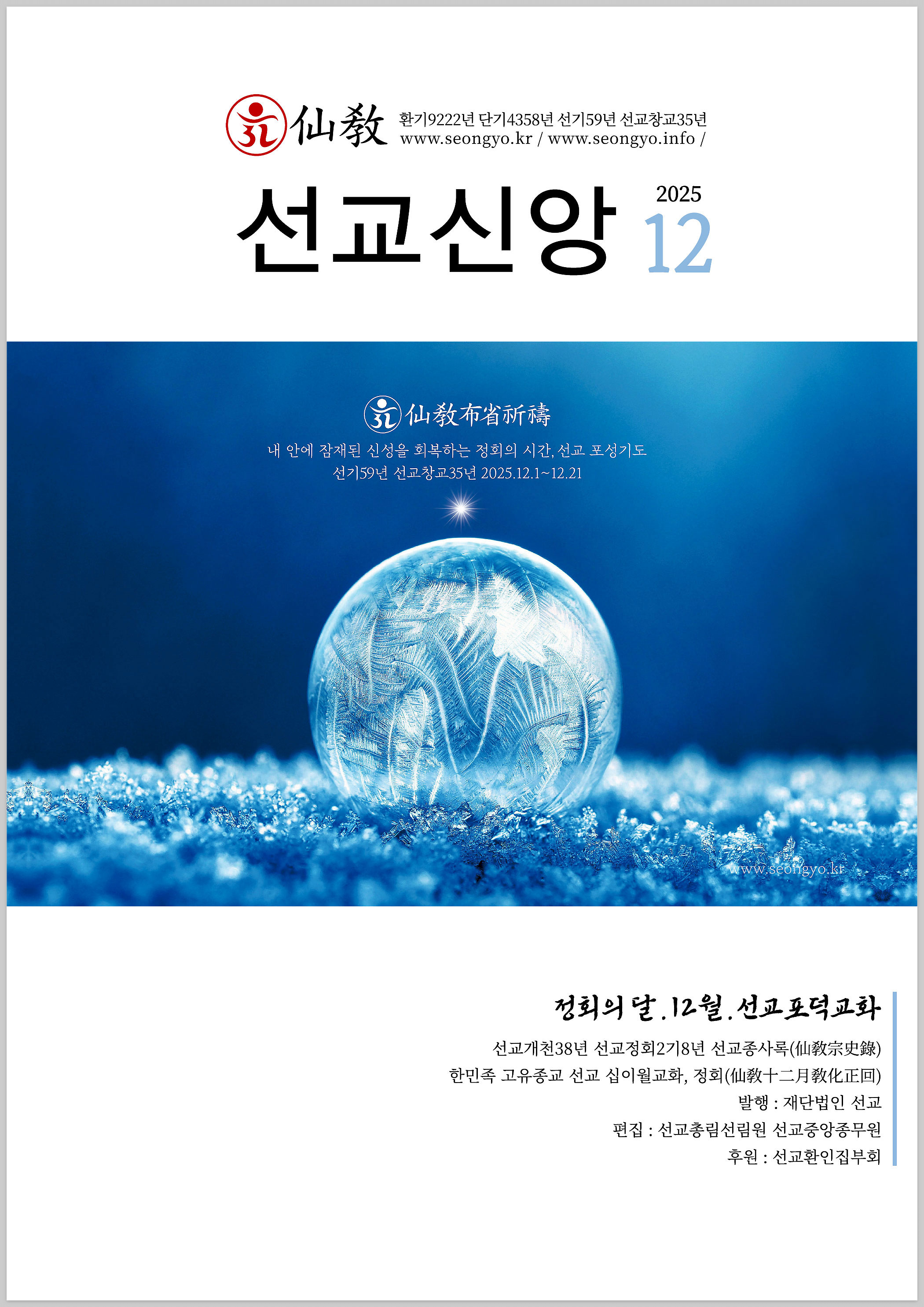 이로써 환기9222년 단기4358년 선기59년, 선교창교35년 을사년(乙巳年) 2025년 12월 종재(十二月終齋)를 마무리합니다.
