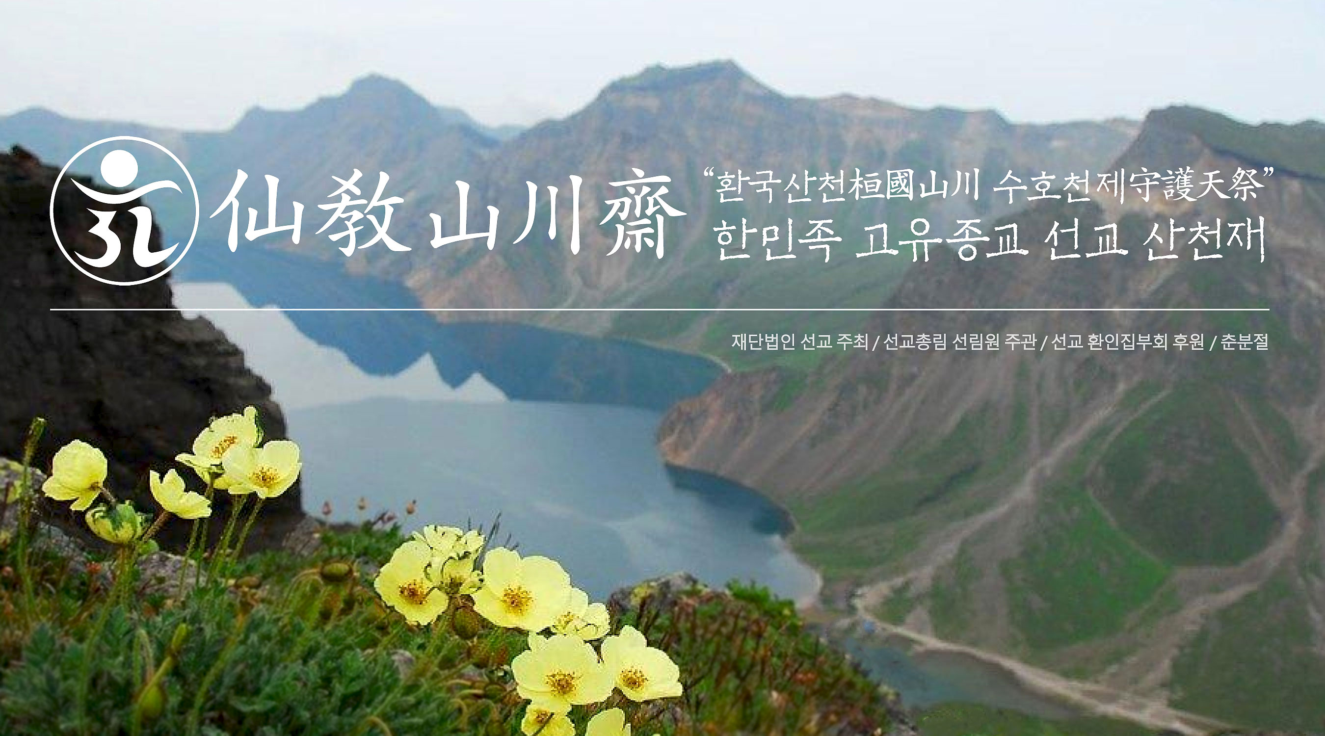 환인(桓因) 하느님의 향훈, 24절기(二十四節氣) 춘분(春分)의 천지조화(天地造化)가 선연히 드리워진 대한의 산천에서 선교수행대중 선교인들과 함께 환인하느님의 나라 환국 대한산천의 수호천제를 봉행하게 되어 기쁜 마음입니다. ○ 환기9188년 선기25년 선교창교원년에 환국산천 수호천제를 시초로, 환기9198년 선기35년 선교창교11년 2001년 신사년(辛巳年)에 선교환인집부회(仙敎桓因慹父會)가 주최한 지리산 노고단 제1차 산천위령제(山川慰靈祭)에 이어 한민족 고유종교 선교(仙敎) 교단(敎團)이 산천재(山川齋)를 봉행한지 어언 30여 성상(星霜)이 지났습니다. ○ 한민족 고유종교 선교(韓民族固有宗敎仙敎) 교단은 한민족의 시조이시며 온 세상의 하느님이신 천제환인(天帝桓因)의 나라 환국(桓國), 대한(大韓)의 산천(大韓山川)을 수호하고자 열심을 다해왔습니다. ○ 24절기(二十四節氣)의 천지조화(天地造化)는 환인(桓因) 하느님의 향훈이 가시적으로 나타나는 현상입니다. 대한민국 한반도(大韓民國韓半島)는 사계절의 변화가 가장 분명하고 24절기의 특징이 가장 뚜렷합니다. ○ 한반도는 지구의 중심이며 하느님의 나라 환국(桓國)이요 신국(神國)이며, 한반도의 산천(大韓山川)은 어느 한 곳도 환인 하느님의 향훈이 미치지 않는 곳이 없는 소중한 선교의 성지(聖地)입니다. 선교(仙敎)는 한반도에서 창교된 한민족 고유 종교이며, 동시에 한국의 고유한 민족종교입니다. 그러하기에 우리 선교인은 환인하느님 자손로서의 민족적 사명, 대한민국 한반도의 산천을 수호할 사명을 다해야 하는 것입니다. ○ 조선시대 임금은 천문의 기이현상이나 자연재해가 있을 때, 첨성대(瞻星臺)에 올라 하늘의 뜻을 살피고(瞻星), 반성하는 의례를 거행했습니다. 형벌을 감면하거나 사면을 내리고 백성을 고충을 살피는 등, 하늘의 뜻을 구하여 나라를 다스리는 군왕의 모습을 보였습니다. 낮과 밤이 같아 하늘의 기운이 균형을 이루는 시기인 춘추분(春秋分)에는 도량형(度量衡)을 점검하고 어그러진 것을 바로잡아 맞추었는데, 이는 단순한 행정이 아니라, 자연의 순환과 질서유지를 상징하는 의례로써의 의미가 있습니다. ○ 선교(仙敎) 교단이 춘추분(春秋分) 절기에 산천재(山川齋)를 봉행하는 이유 또한 그와같은 것이어서, 환인(桓因) 하느님께서 내려주시는 천기(天氣)와 선교의 교화력(敎化力)으로 훼손되고 어그러진 산천의 정기(山川精氣)를 되살리기를 기원하는 것입니다. ○ 선교 추분 산천재(仙敎秋分山川齋)는 산천수호천제(山川守護天祭)인 동시에, 선교 창교종리(仙敎創敎宗理)인 천지인합일 정회사상(天地人合一正回思想)의 실천적 수행입니다. 산천 정기회복의 실천은 선교(仙敎)의 교화선(敎化禪) 선도(仙道)의 실체적 수행 인 것입니다. ○ 이를 일컫어 우리 한민족 고유종교 선교, 선가(仙家)에서는 「선교(仙敎) 풍류이시선가풍(風流以是仙家風) 선도(仙道)」라고 합니다. 선교(仙敎)는 하늘의 교화요, 하늘의 교화에 따라 수행하는 것이 선도(仙道)이기에, 선교의 수행문화를 선도(仙道)라 하는 것입니다. ○ 선도(仙道)는 하늘의 교화 선교(仙敎)로써 홍익인간 재세이화하는 길이며, 승선(昇仙)의 도(道)를 깨달아 천지인합일(天地人合一) 정회(正回)에 이르는 길이 바로 선(仙)의 도(道)입니다. ○ 선교(仙敎)와 선도(仙道)의 사상적 교리의 이치가 이러하니, “한민족 고유의 선사상(仙思想)은 하느님 사상(桓因思想)이요, 한민족 고유종교 선교(仙敎)는 하느님 환인(桓因上帝)의 교화(敎化)이며, 한민족 고유종교 선교의 수행문화 즉 선교 교화선 풍류이시 선가풍(仙家風)을 한민족 고유 선도(韓民族固有仙道)라 한다” 정의할 수 있습니다. ○ 선교 수행자는 선교 풍류이시 선가풍(仙敎風流以是署家風) 선도(仙道) 수행에 일심정진(一心正進)하여 신성(神性)의 빛으로 깨어나 승선의 도(昇仙之道)를 깨치고, 천지인합일 정회의 길(天地人合一正回至道)을 열어야 합니다. 일심정회(一心正回)하여 하느님 환인의 광명(光明), 신성의 빛을 회복하는 것이 선교수행(仙敎修行) 궁극일절(窮極一節)이라 ... ○ 이러한 하늘의 교화를 담아 천지인합일(天地人合一) 선도공법(仙道功法)을 창시하느니, 하느님 환인의 광명조화(光明造化) 빛의 율려(律呂)와 공명(共鳴)하여 몸과 정신 깊은 곳에서부터 신성의 빛 신성광명(神性光明)으로 깨어나 천지인합일(天地人合一)에 이르는 선교수행을 한민족 고유선도, 환국선도(桓國仙道)라 합니다.