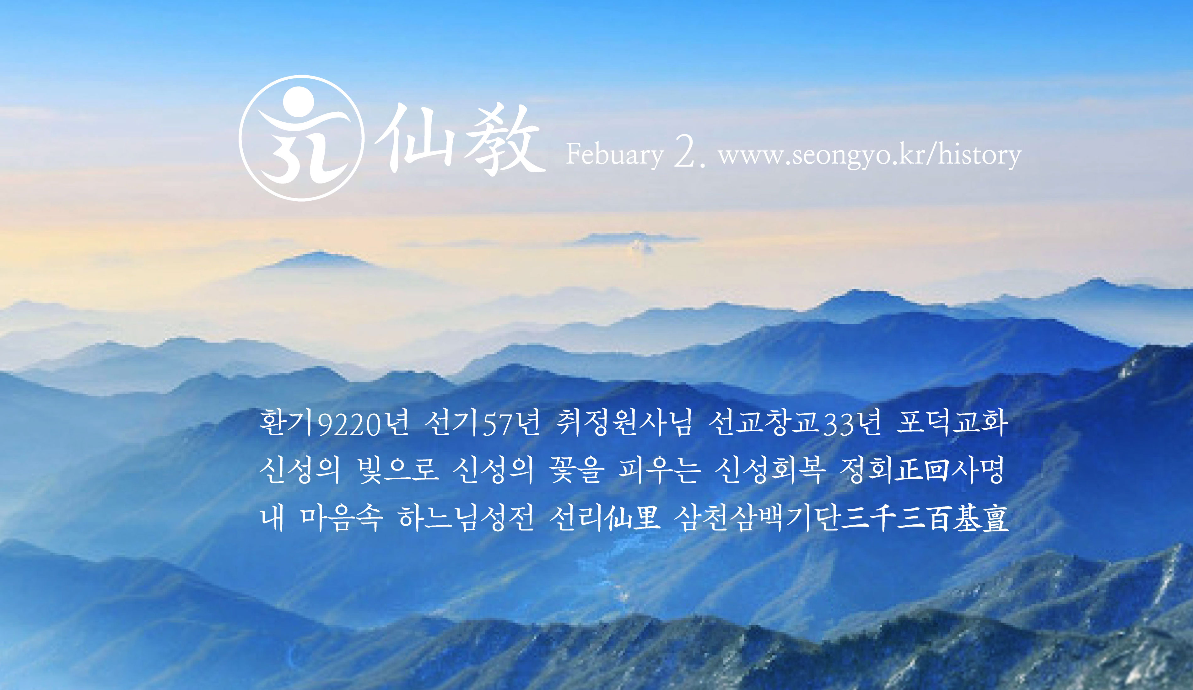 한민족 고유종교 선교(仙敎) / 8월, 선교 해원상생의 달 / 법회 및 수행 선교 포덕교화 2024 / “8월, 선교 해원상생의 달” 법회 및 수행 안내 환기9221년 선기58년 선교창교34년(33주년) / 내 마음속 하느님성전, 선리 삼천삼백기단仙敎敎團正回二紀七年甲辰年仙敎創始者聚正元師新年敎諭仙里三千三百基亶在世理化正回使命 환인(桓因) 하느님의 향훈(嚮暈)과 선교 교조(仙敎敎祖) 취정원사(聚正元師)님의 교화(敎化) 아래, 선교(仙敎) 수행대중과 선교인 모두 “내 마음속 하느님성전”에서 “천지인합일 신성회복”을 이룹니다.출처: www.seongyo.kr/notice [仙敎] 2024 . 8. 선교 법회 및 수행 주요일정선기 58년 선교창교 34년, 천지인합일 선교 재세이화(在世理化) / 21..
