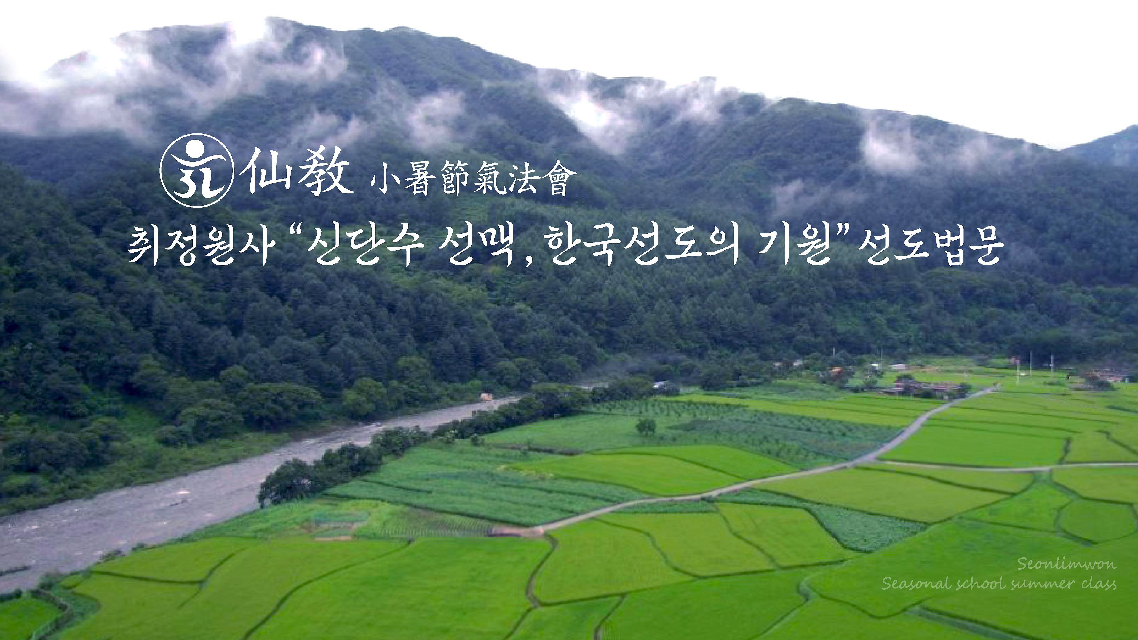 한민족 고유종교 선교(仙敎) / 창교주 취정원사 / 소서 절기법회 · 법문 선교(仙敎) 절기법회 / 24절기 소서 / 선교 창시자 취정원사님 선도법문“신단수 선맥(神檀樹仙脈), 한국선도의 기원(韓國仙道起源)” 선교(仙敎) 취정원사, ‘7월, 신단수의 달’ 맞아 ‘신단수 선맥, 한국선도의 기원’ 주제로 절기법회 법문 / “선도(仙道)의 맥(脈)은 하느님 환인(桓因)의 교화 선교(仙敎)에서 비롯되어 환국(桓國)으로 전해졌으니, 한국선도(韓國仙道)는 곧 환국선도(桓國仙道)이다. 한국선도의 선맥(仙脈)은 천지인합일(天地人合一)의 상징인 신단수(神檀樹) 아래로 하강한 환웅(桓雄)에서 단군(檀君)으로 이어져, 하느님 환인(桓因上帝)께 제천(祭天)하며 교화(敎化)를 펼치어 생무생일체를 다스렸으니, 이에 한민족의 고..