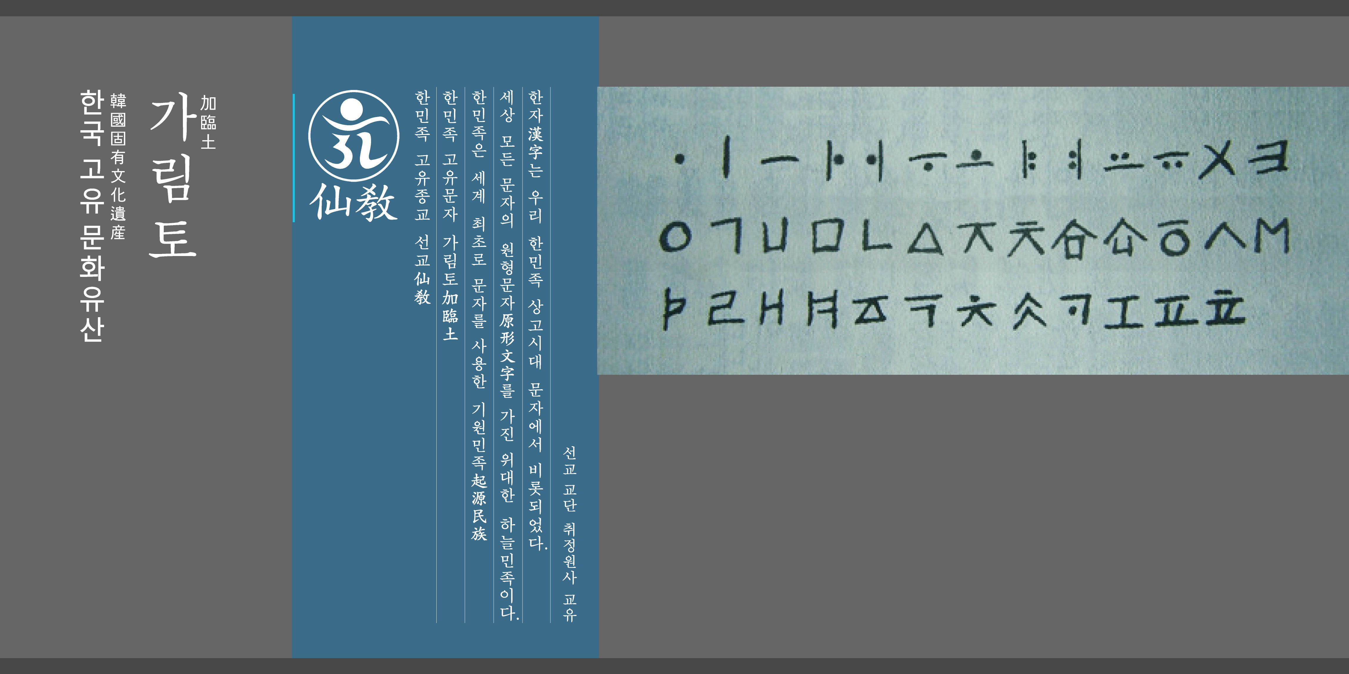 세상 모든 문자의 원형문자(原形文字)를 가진 위대한 민족이 우리 한민족이다. 훈민정음(訓民正音) 한글은 고대 가림토(加臨土)에서 유래한 것이요, 한자(漢字)는 우리의 녹도문(鹿圖文)에서 유래한 것이다.