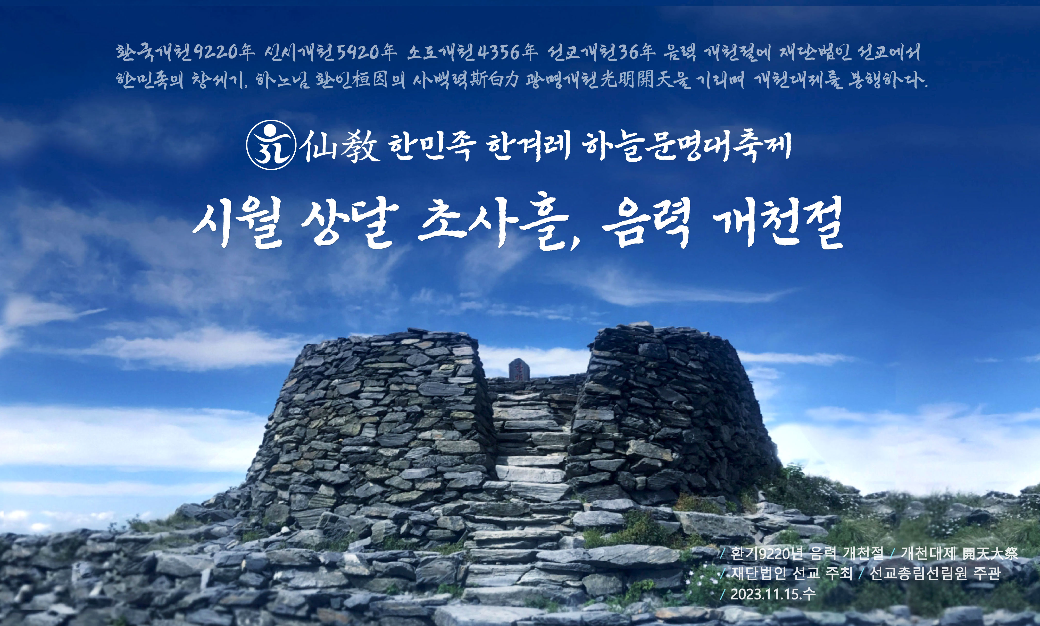 환기9220년 음력 개천절 / 개천대제(開天大祭) / 재단법인 선교 주최 / 선교총림선림원 주관 / 2023.11.15.수