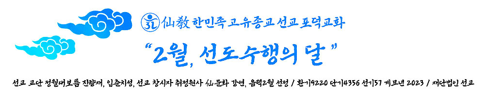 | 환기9220 선기57 선교창교33년 | 선교 교단 음력 2월 선정기간 / 2023.2.20~3.12 | |