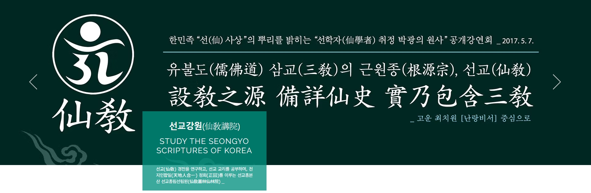 선교 교단을 대표하는 재단법인 선교(仙敎)는 선교 창시자 취정원사께서 창교하신 한민족 고유종교 선교(仙敎)에 대한 이해와 포덕교화를 위해 재단법인 선교 산하 선교총림 선림원의 주관으로 선교학당 교리강좌를 실시하여, 선교강원(仙敎講院)의 교무(敎務)를 양성하고 선교 교리 연구 활동과 선교경전과 교리 보전에 힘씁니다.