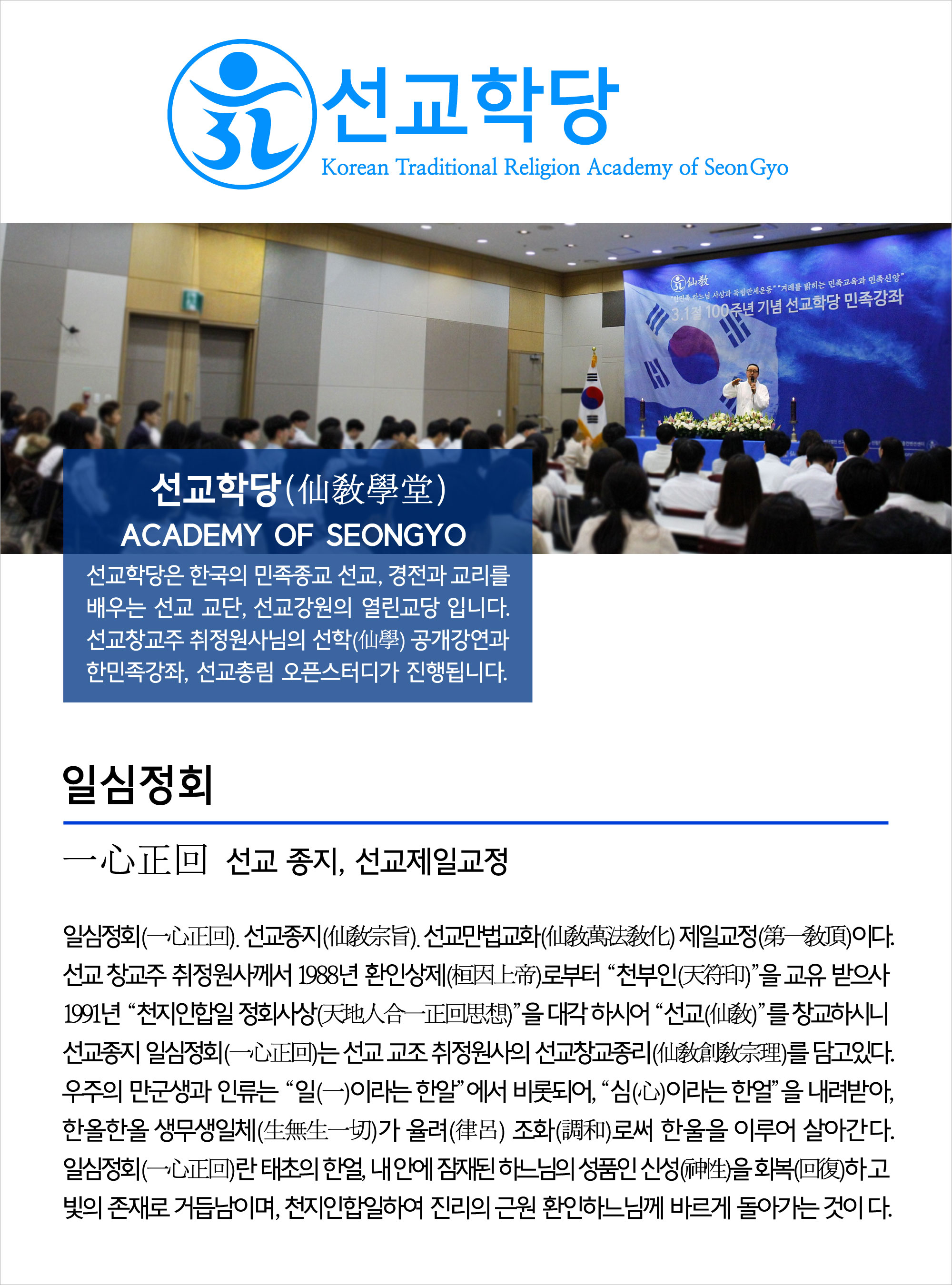 | 환기9223년 선기60년 선교창교36년 선교강원 교리강좌 / 3월 선교학당 / 일심정회(一心正回) |