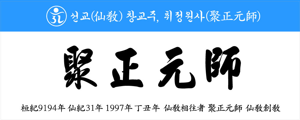 취정원사(聚正元師)께서는 환인하느님(桓因上帝)과의 영체이탈을 통하시어 천지간 원리를 깨치시고 조화본령이 되신 선교(仙敎)의 창교주(創敎主)이십니다. 환기(桓紀)9185년 선기(仙紀)22년 1988년 무진년에 환인상제님으로부터 천부인(天符印)과 선교상왕자 종위(宗位) 개천입교(開天立敎)의 천명을 받으시고, 취정원사님은 산천수행의 길에 들어 1991년 신미년에 "천지인합일(天地人合一) 정회사상(正回思想)"의 대각을 이루시어 선교(仙敎)를 대창교 하셨습니다. 이후 환기9194년 선기31년 1997년 정축년에 선림원 시정원주님과 합일강생하시어 "선교(仙敎) 교단"을 창설하시어 하늘의 교화를 펼치셨습니다.