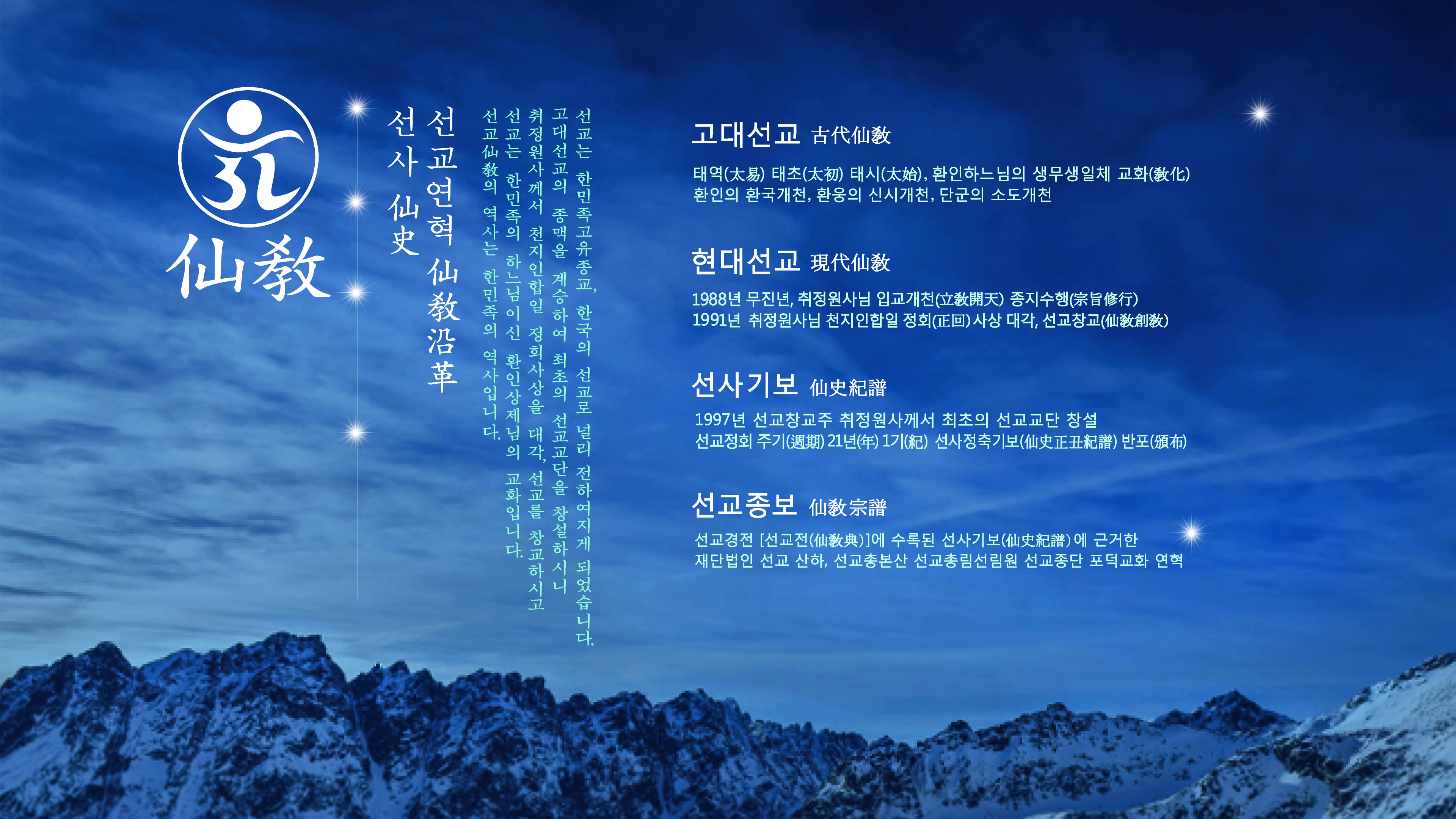 한민족 고유종교 선교 / 선교공지 / 2023년 10월 선교, 고유문화(固有文化)의 달 선교(仙敎), 2023년 10월 “고유문화(固有文化)의 달” 법회 및 수행 안내 환기9220년 단기4356년 선기57년, 환인(桓因) 하느님의 향훈, 선교 포덕교화 선교 교조(仙敎敎祖) 취정원사(聚正元師) 개천입교(開天立敎)36년 선교창교(仙敎創敎)33년 선교(仙敎) 수행대중과 선교인 모두, “내 마음속 하느님성전”에서 “신성회복”을 이룹니다. 仙敎敎團正回二紀六年癸卯年仙敎創始者朴光義聚正元師新年敎諭神性回復正回使命 한민족 고유종교 선교 2023 . 10 . 선교법회 및 수행 주요일정 ※ 선기 57년 선교창교 33년, 신성회복(神性回復) / 2023년 274일~304일 정회(正回) ※ 선기57년 2023년 선교 교단 율려의..