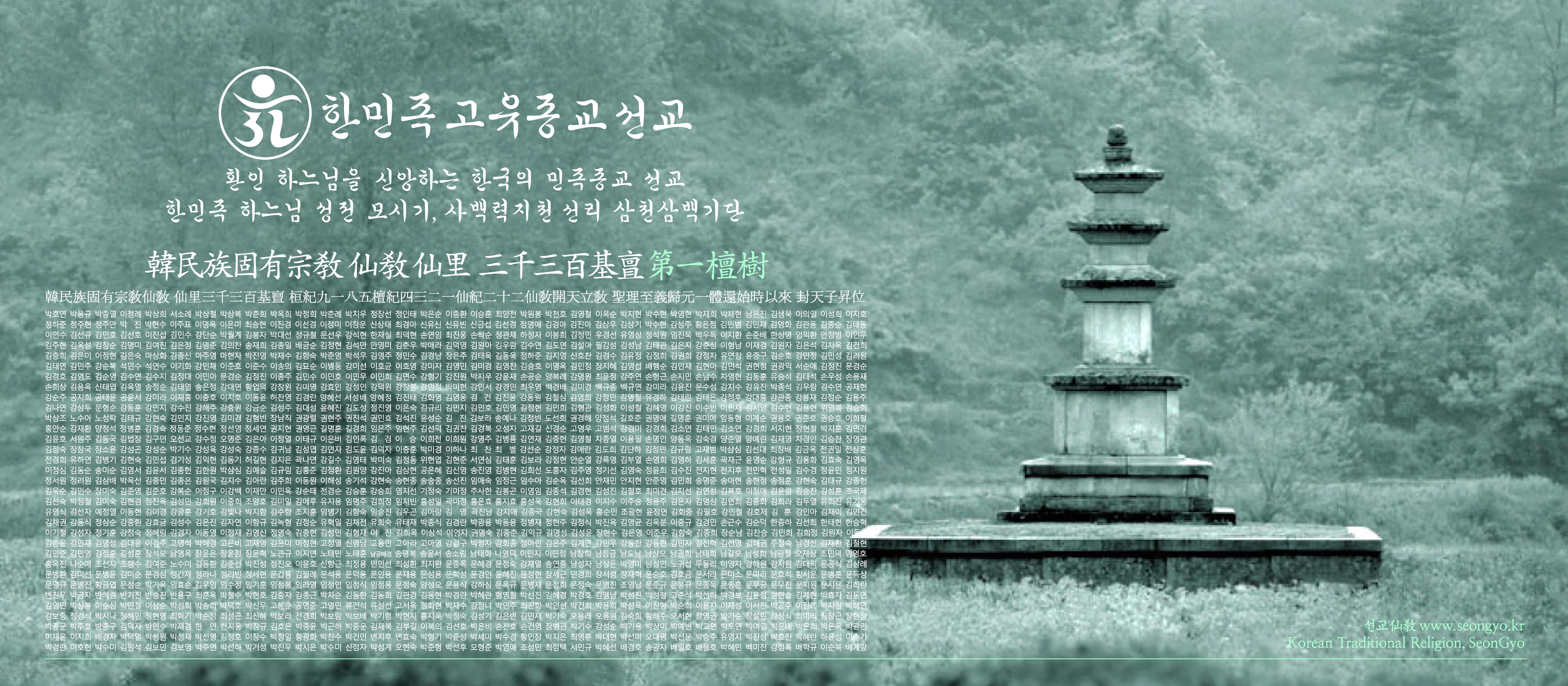 한민족 고유종교 선교(仙敎) / 선교연혁 / 선교창교 32년 · 창교 31주년 2022년 선교종사(仙敎宗史) 선교 창교 31주년 선교종사 2022’[선교(仙敎) 주요연혁]1988 선교 개천(開天) / 선교 창교주 취정원사님 천부인(天符印) 교유. 고대선교 종맥계승.1991 선교 창교(創敎) / 취정원사님 천지인합일 정회사상 대각. “선교(仙敎)” 교명 선포. 1997 선교 교단(敎團) 확립 / 취정원사님 선교경전 결집. 선교종헌 제정반포. 선교강원 설립.[선교종사 『종보(宗譜)』 편찬 안내]서기2022년은 환기9219년 단기4355년 선기56년 선교창교32년(31주년)입니다.한민족 고유종교 선교 교단 재단법인 선교(仙敎)는 내 안의 하늘를 열고 신성(神性)을 회복하며, 한민족 하느님성전(桓因聖殿) ..