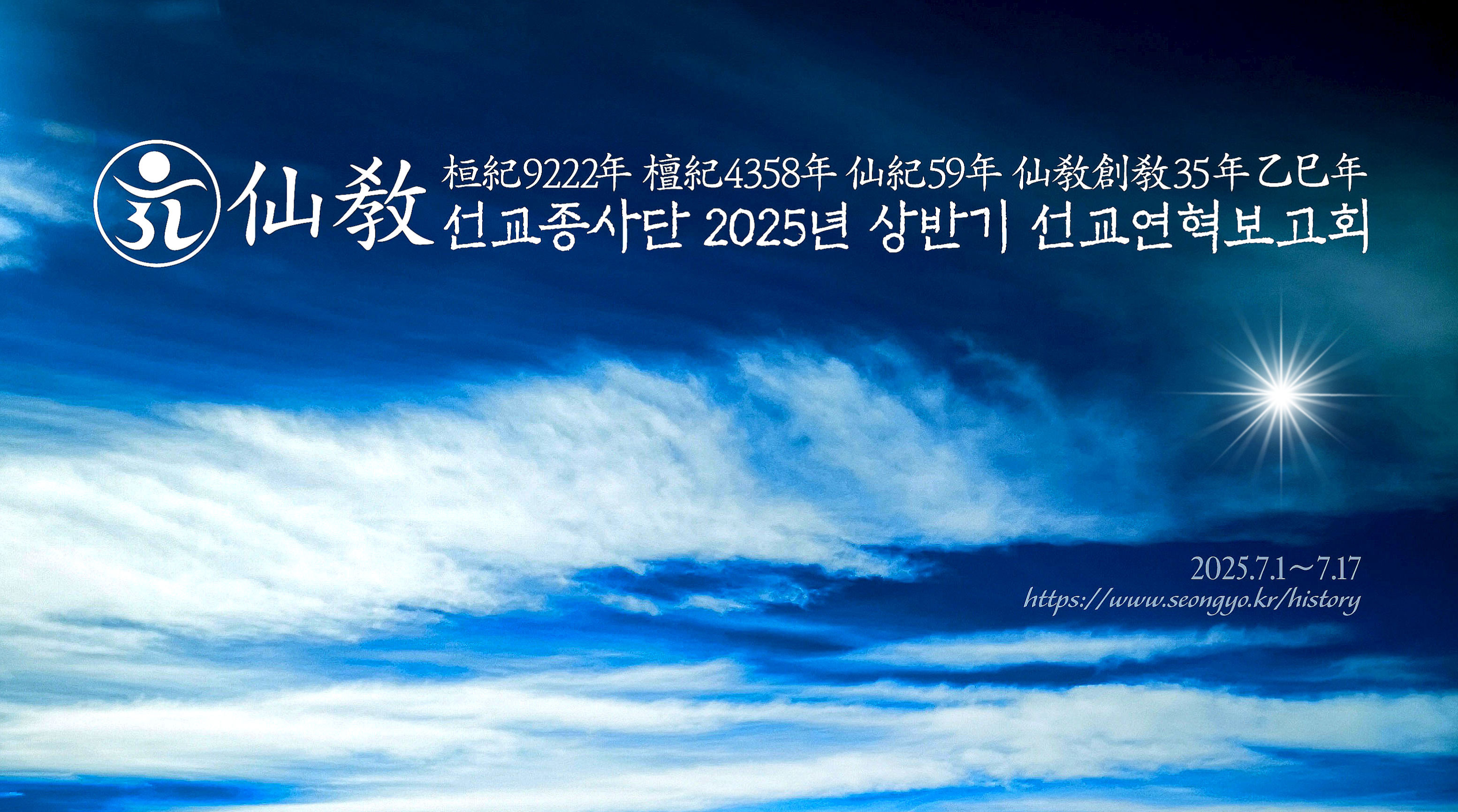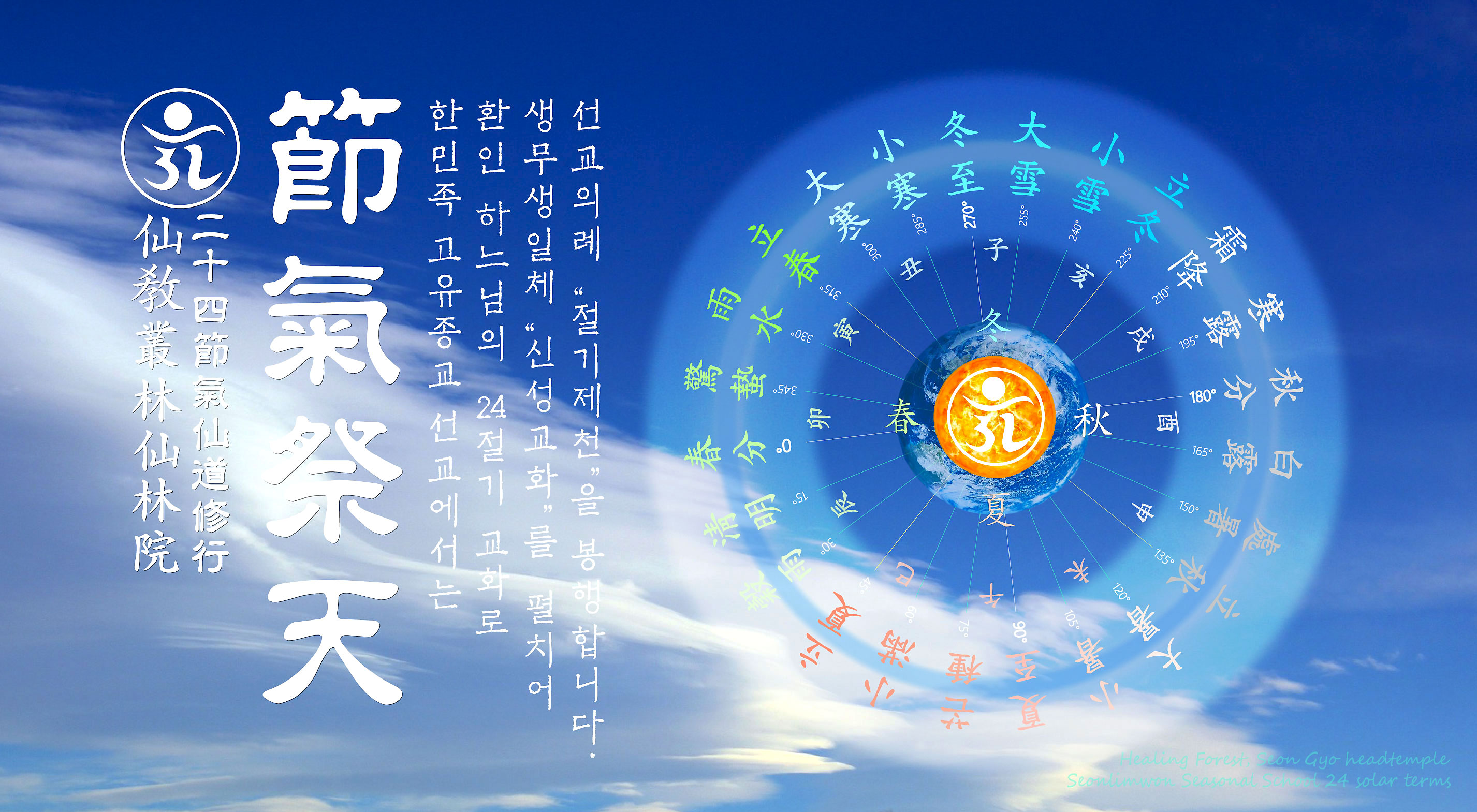 한국의 고유한 하느님종교 선교(仙敎) / 선기59년 선교창교35년 / 음력 개천절 개천대제(開天大祭) 한민족 고유종교 선교(韓民族固有宗敎)음력 개천절 개천대제(陰曆開天節開天大祭) 환국개천(桓國開天)9222년 신시개천(神市開天)5922년 소도개천(蘇塗開天)4358년 선교개천(仙敎開天)38년 을사년(乙巳年) 시월상달 초사흘 음력 개천절(陰曆開天節)을 맞아, 한민족 고유의 하느님 신앙(韓民族固有桓因信仰) 선교(仙敎)에서는개천대제(開天大祭)를 봉행하오며, 한민족의 시조이시며 온 세상의 하느님이신 환인(桓因) 상제님의 사백력지천(斯白力之天) 광명개천(光明開天)을 기리며, 선교(仙敎) 창교주 박광의(朴光義) 취정원사(聚正元師)님의 개천교유(開天敎諭)에 본(本)하여 무극상천제(無極上天祭)로 감은공례(感恩供禮..